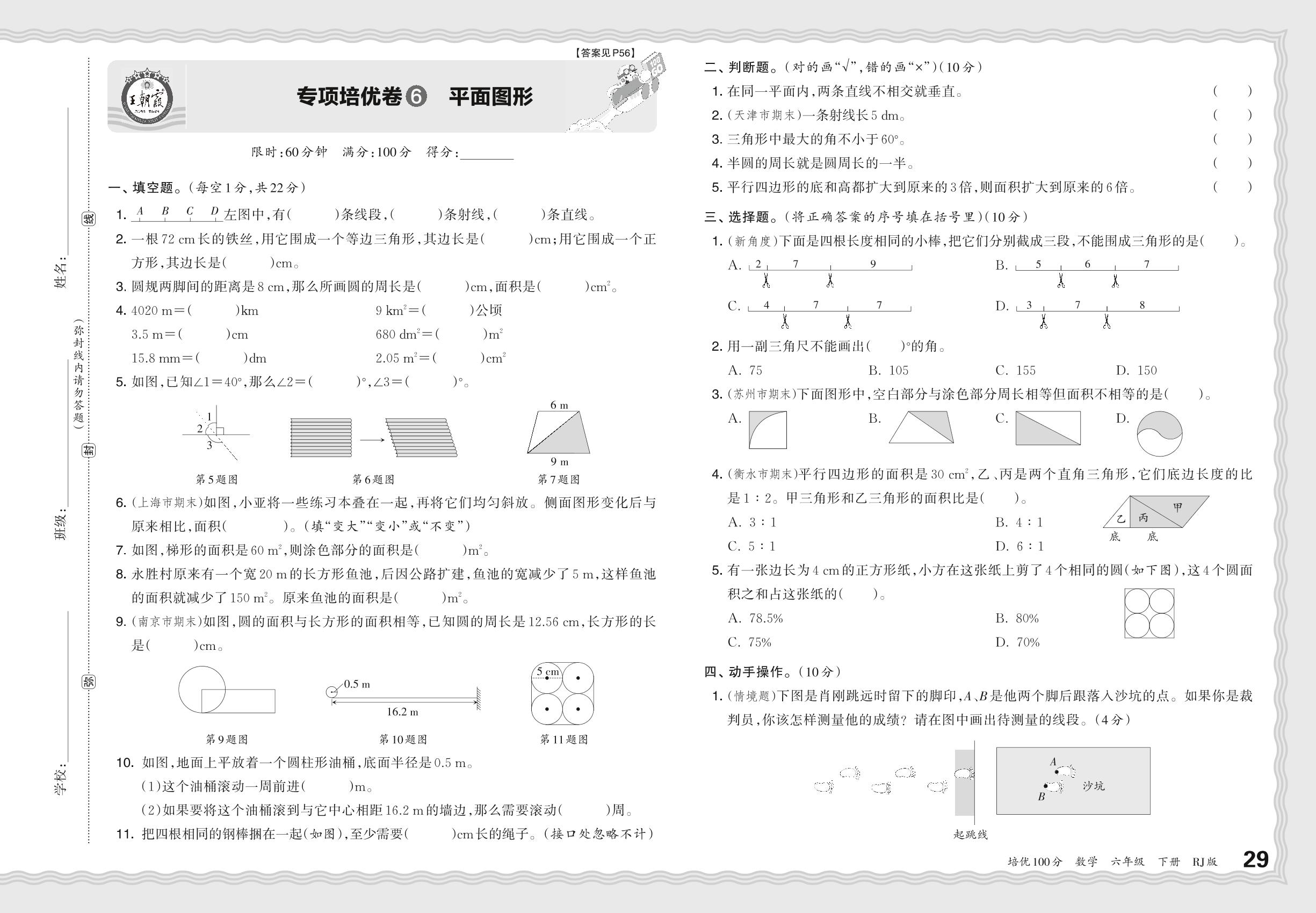 2024春下册六年级数学人教版 期末专项卷PY版·平面图形【6】