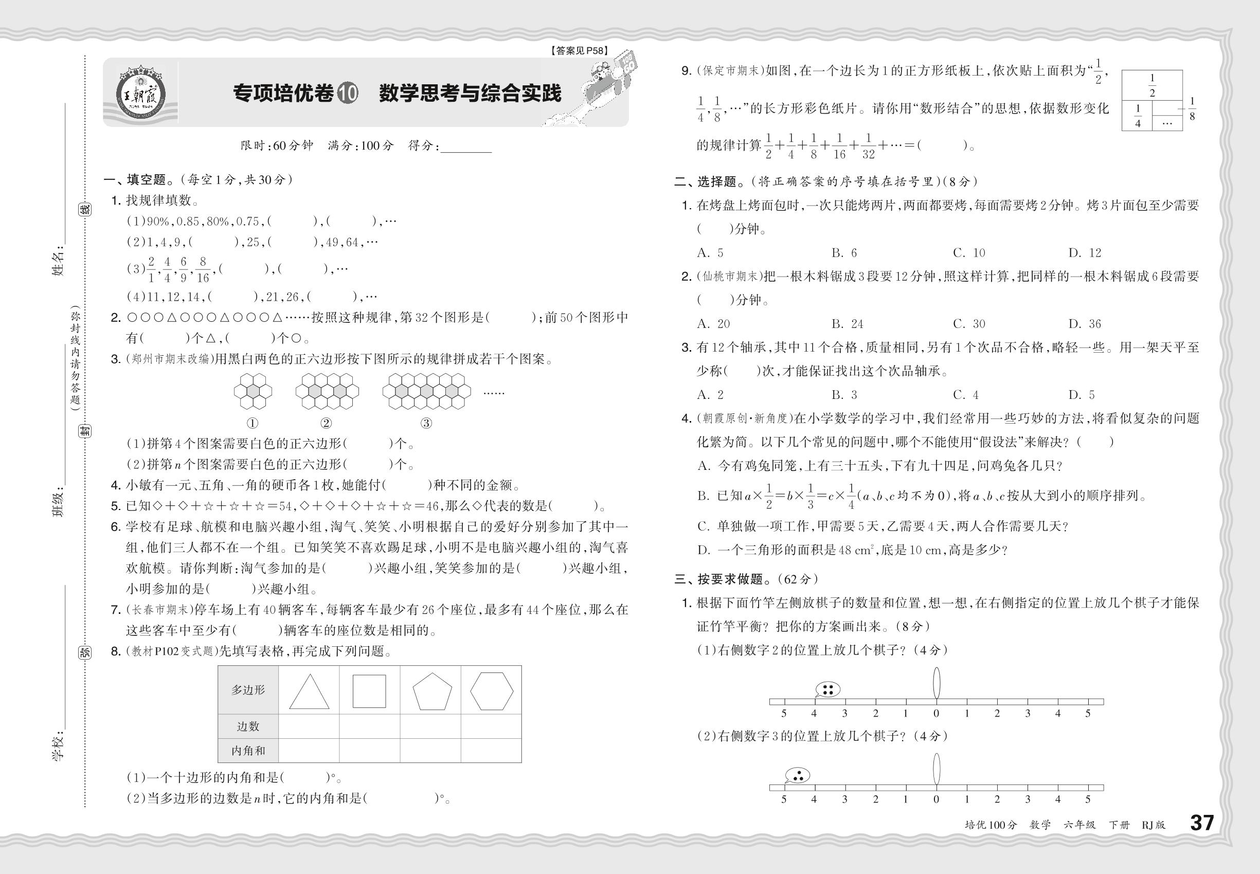 2024春下册六年级数学人教版 期末专项卷PY版·数学思考与综合实践【10】
