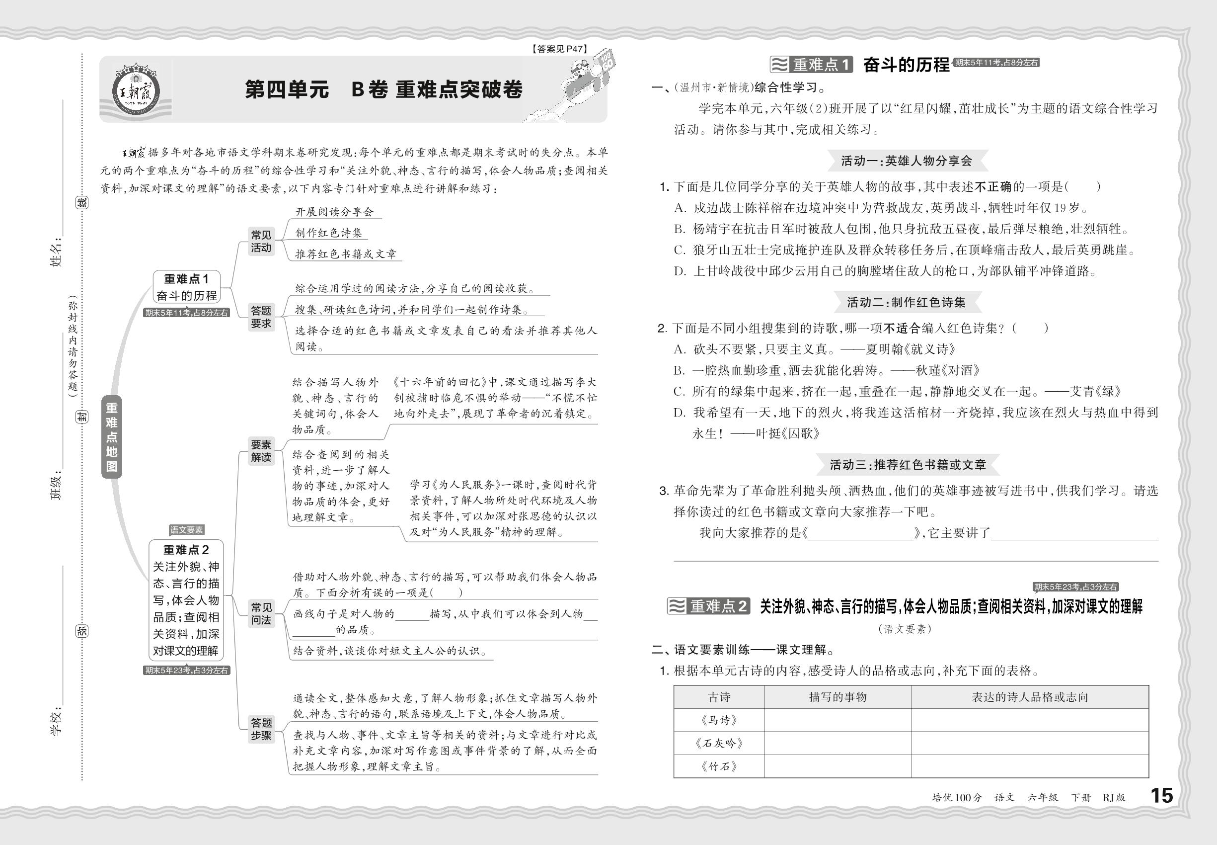 2024春下册六年级语文人教版 第四单元 B卷 重难点突破卷