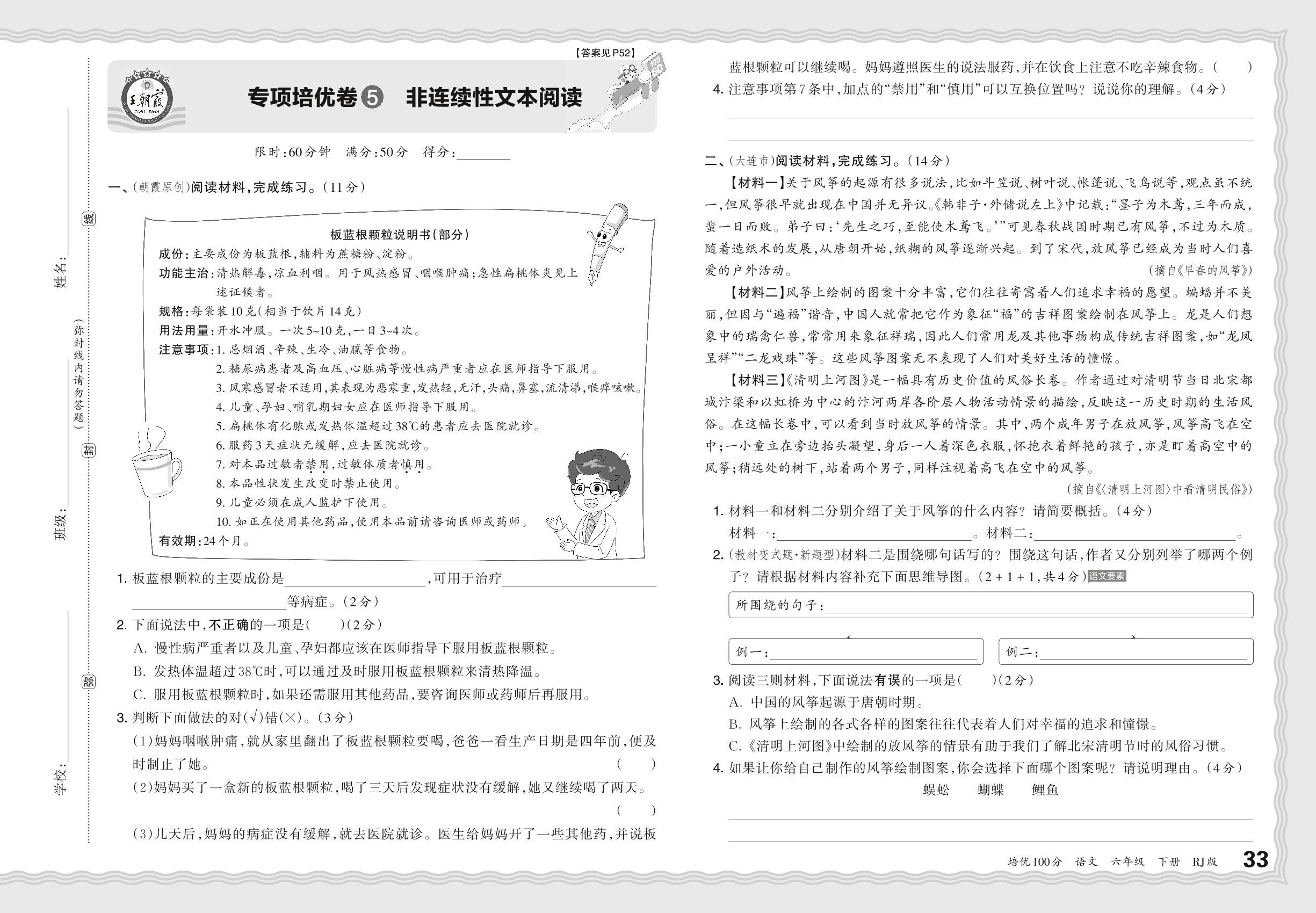 2024春下册六年级语文人教版 期末专项卷PY版·非连续性文本阅读【5】