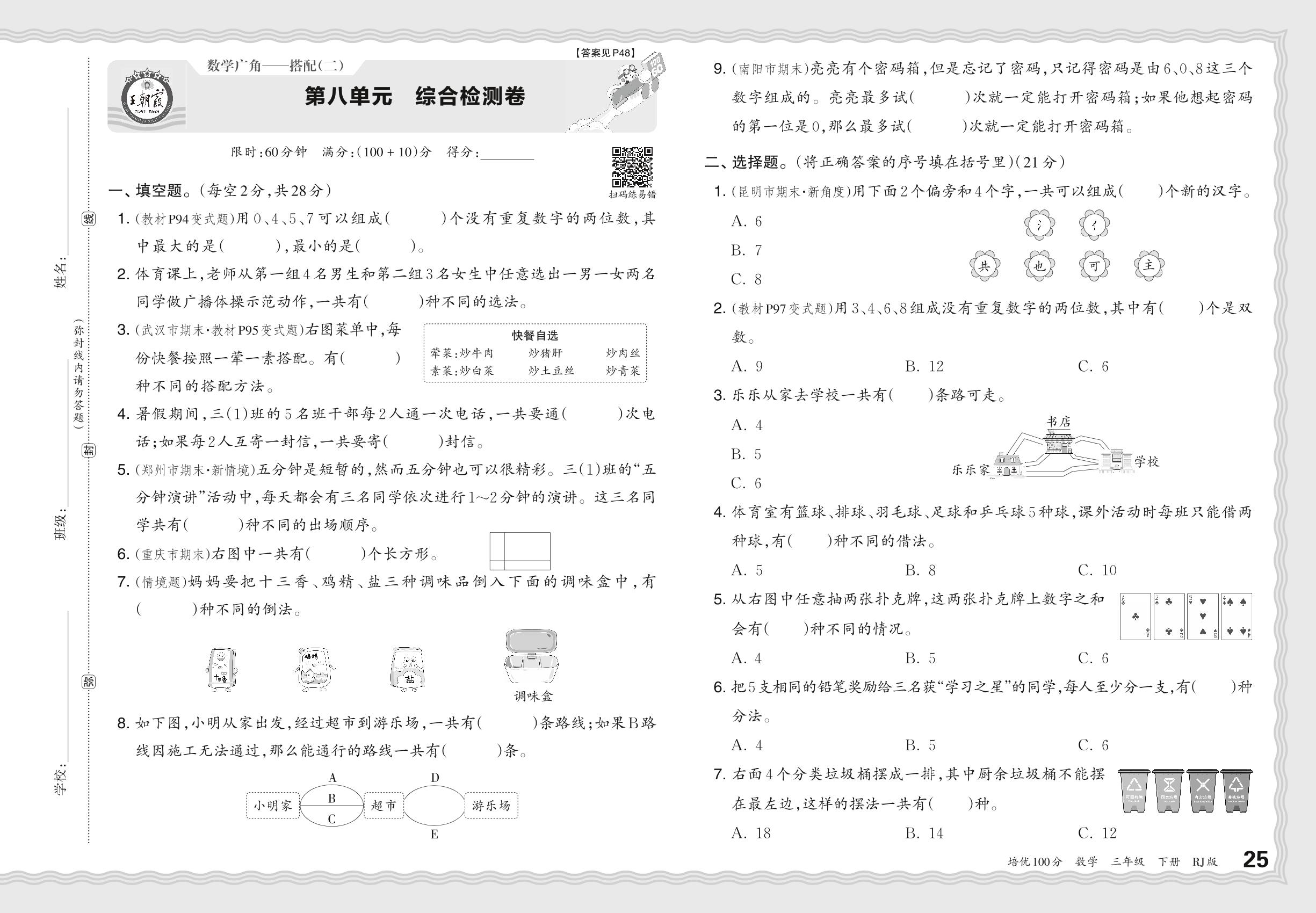 2024春下册三年级数学人教版 第八单元 综合检测卷