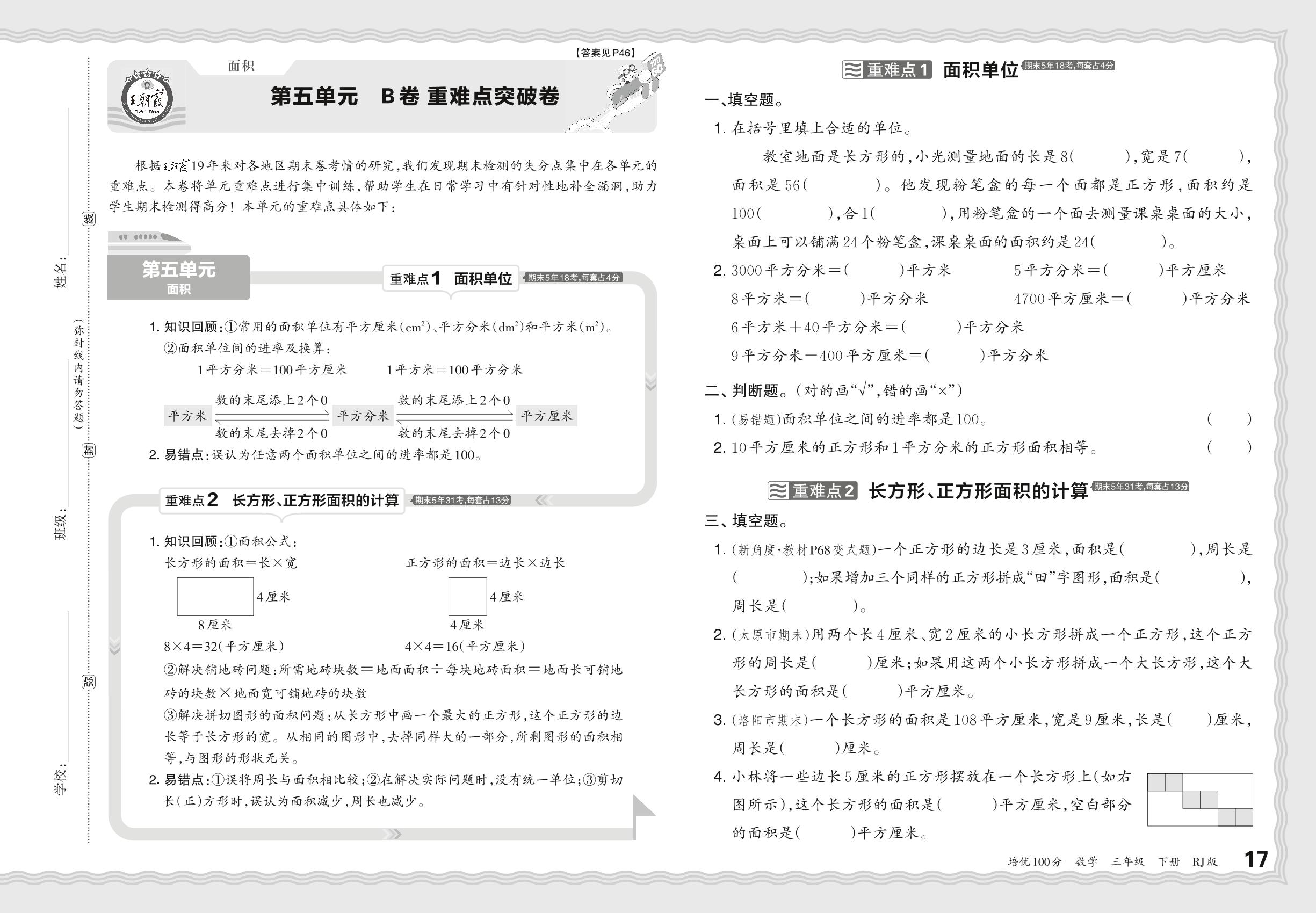 2024春下册三年级数学人教版 第五单元 B卷 重难点突破卷