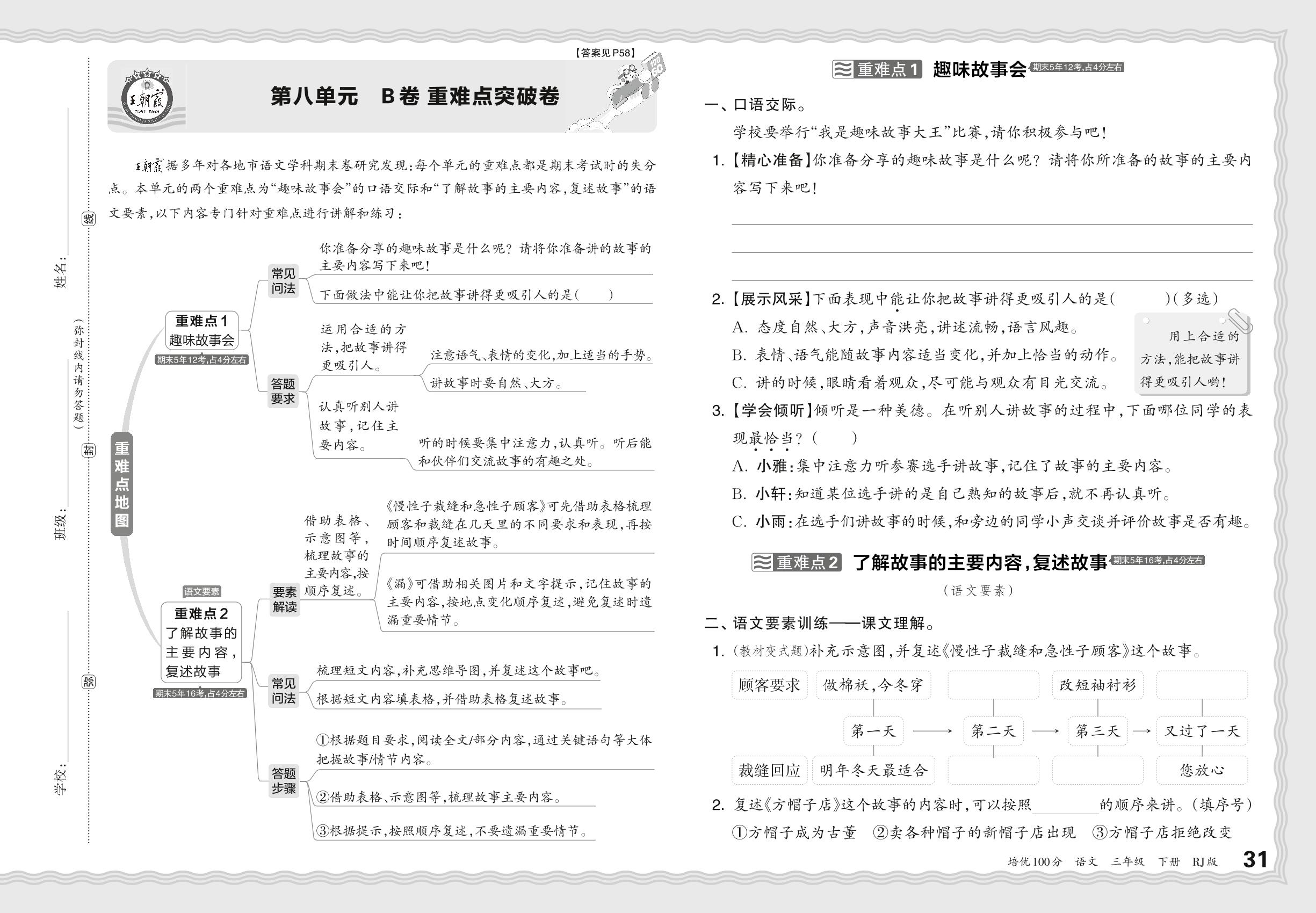 2024春下册三年级语文人教版 第八单元 B卷 重难点突破卷