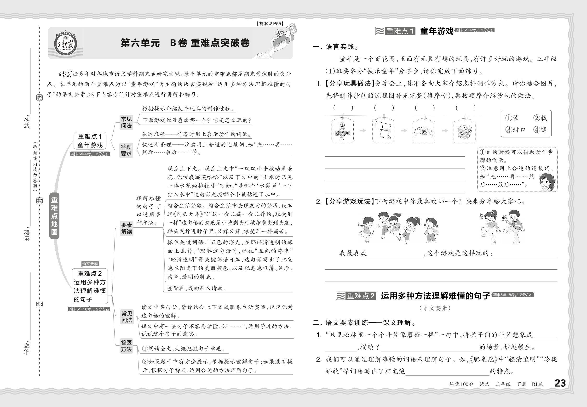 2024春下册三年级语文人教版 第六单元 B卷 重难点突破卷