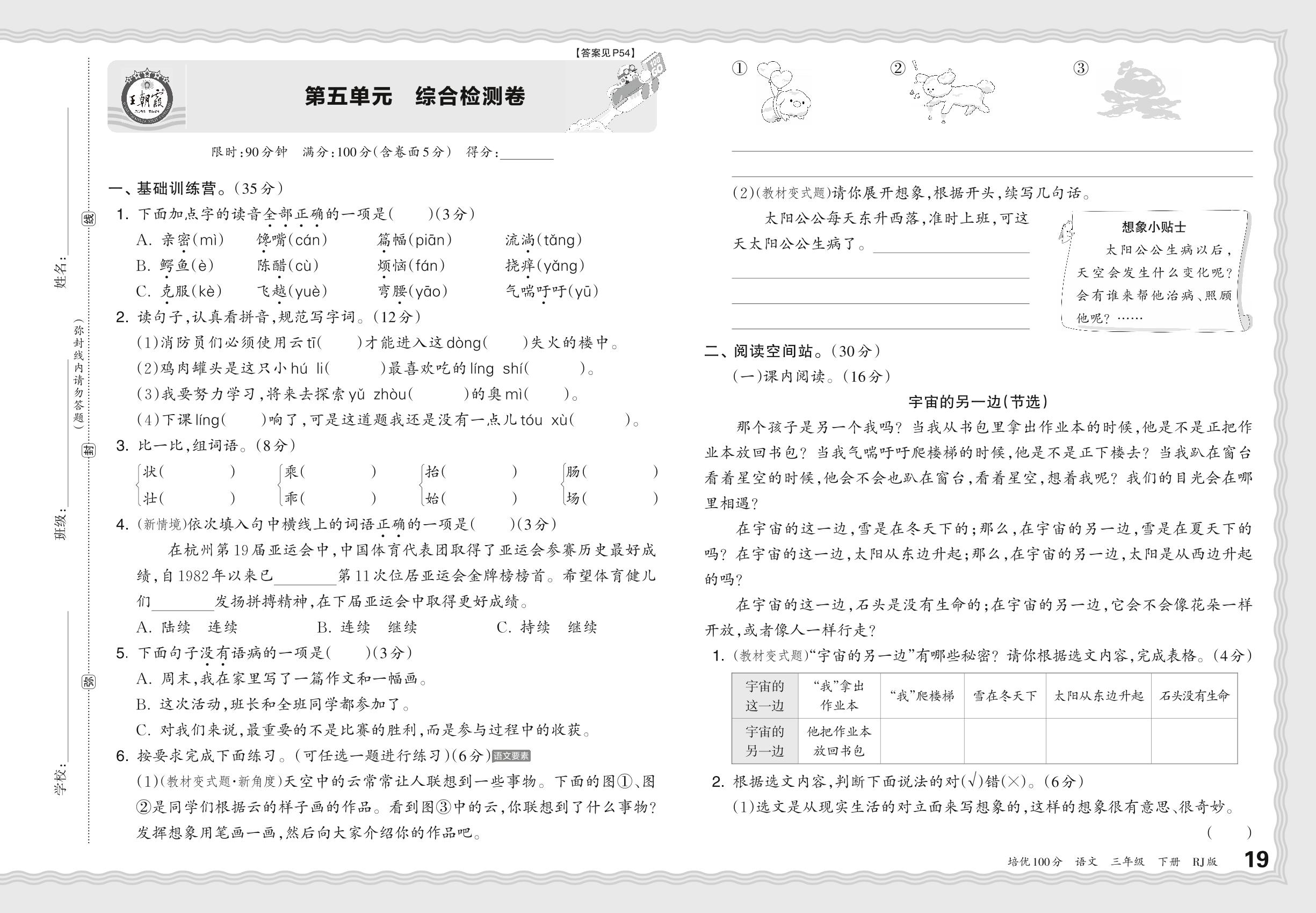 2024春下册三年级语文人教版 第五单元 综合检测卷