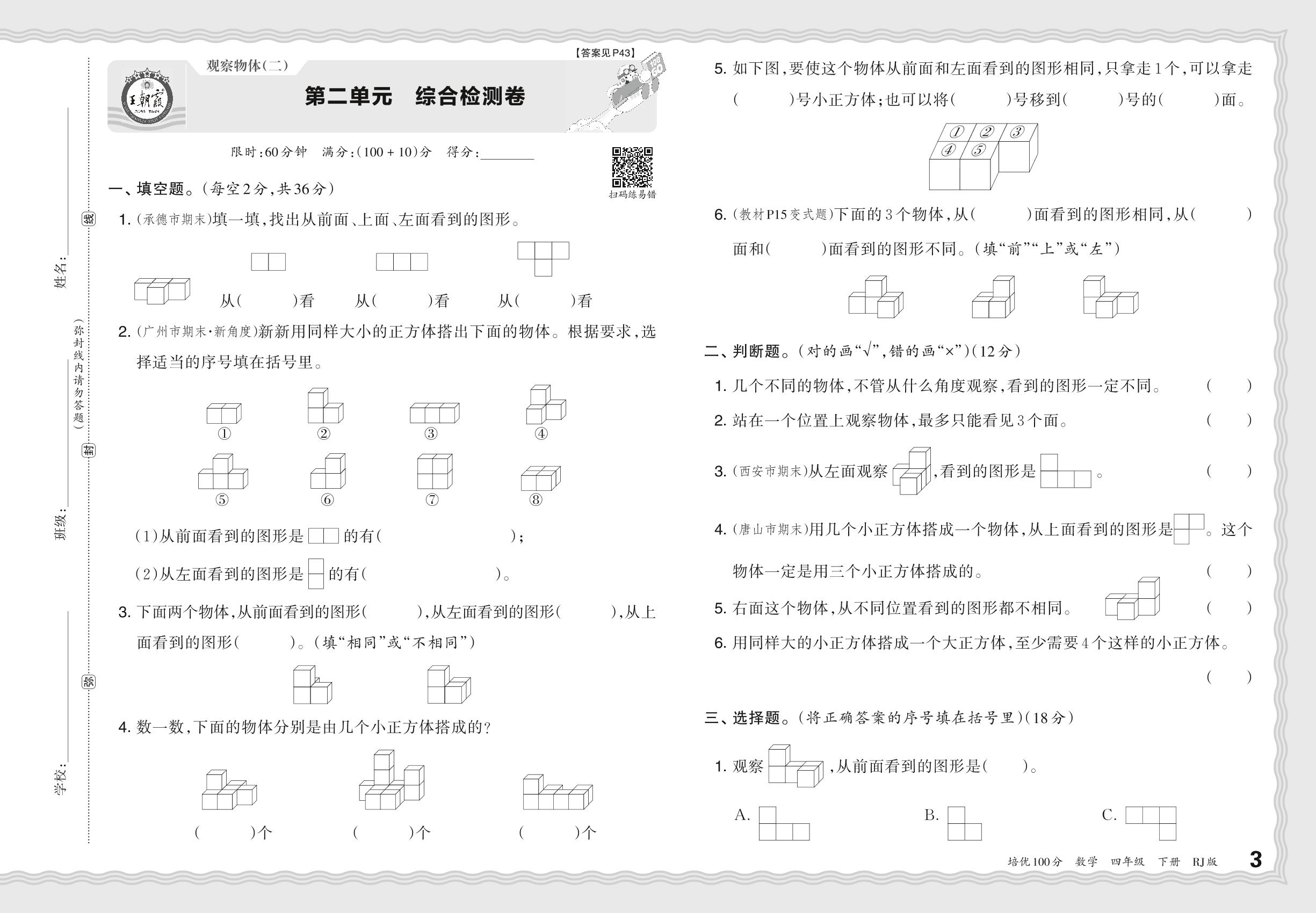 2024春下册四年级数学人教版 第二单元 综合检测卷