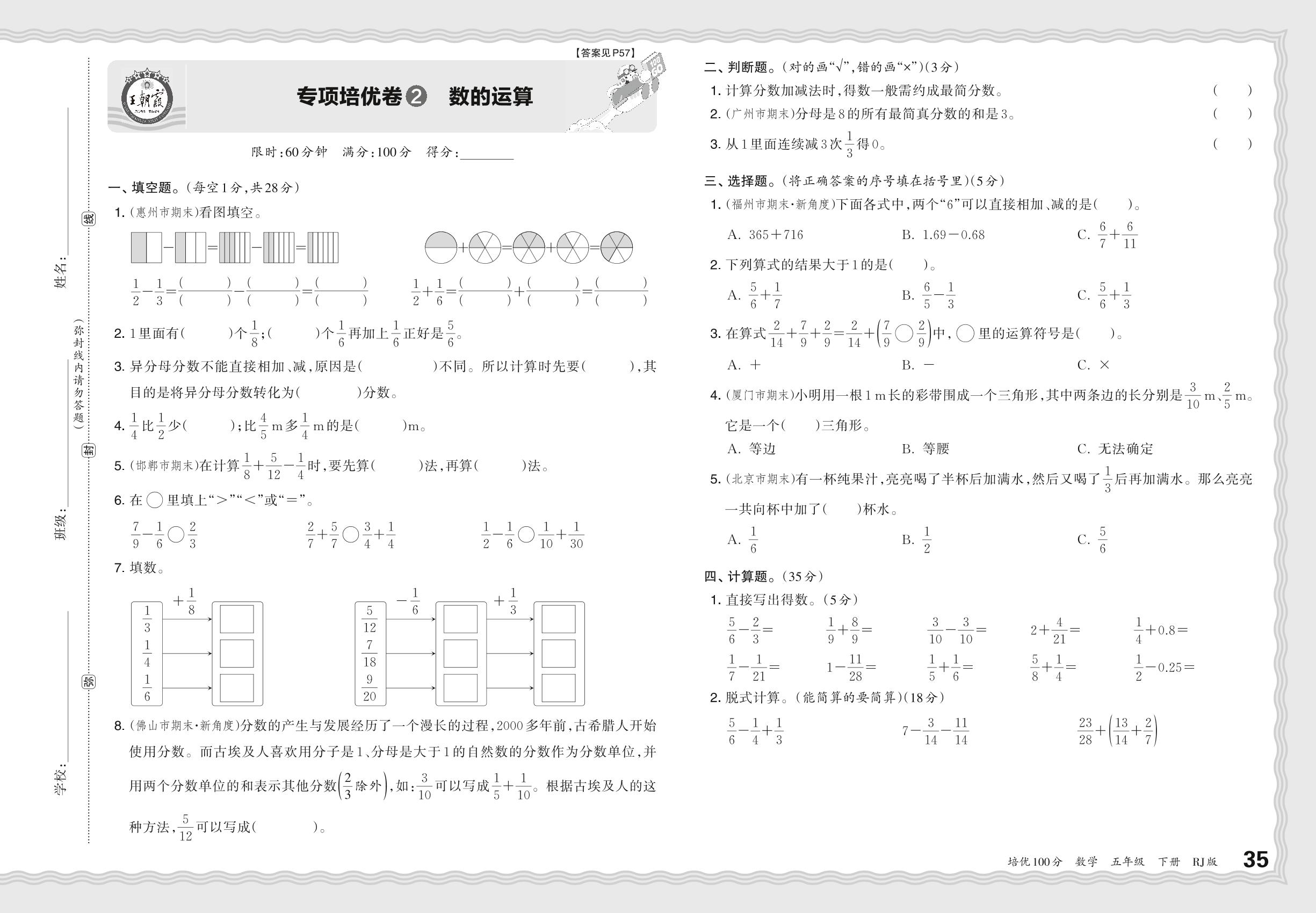 2024春下册五年级数学人教版 期末专项卷PY版·数的运算【2】