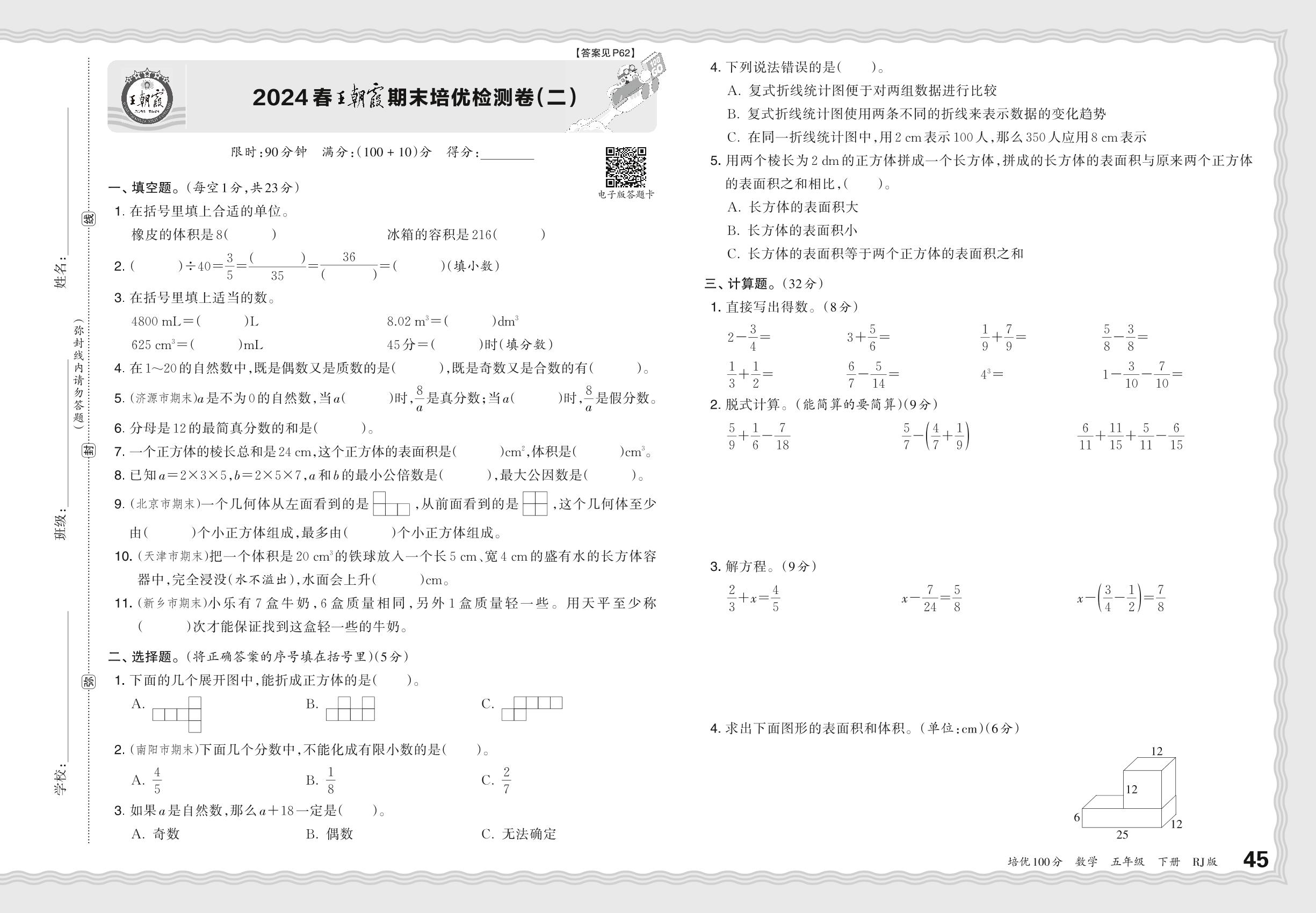 2024春下册五年级数学人教版 王朝霞期末培优检测卷(二)
