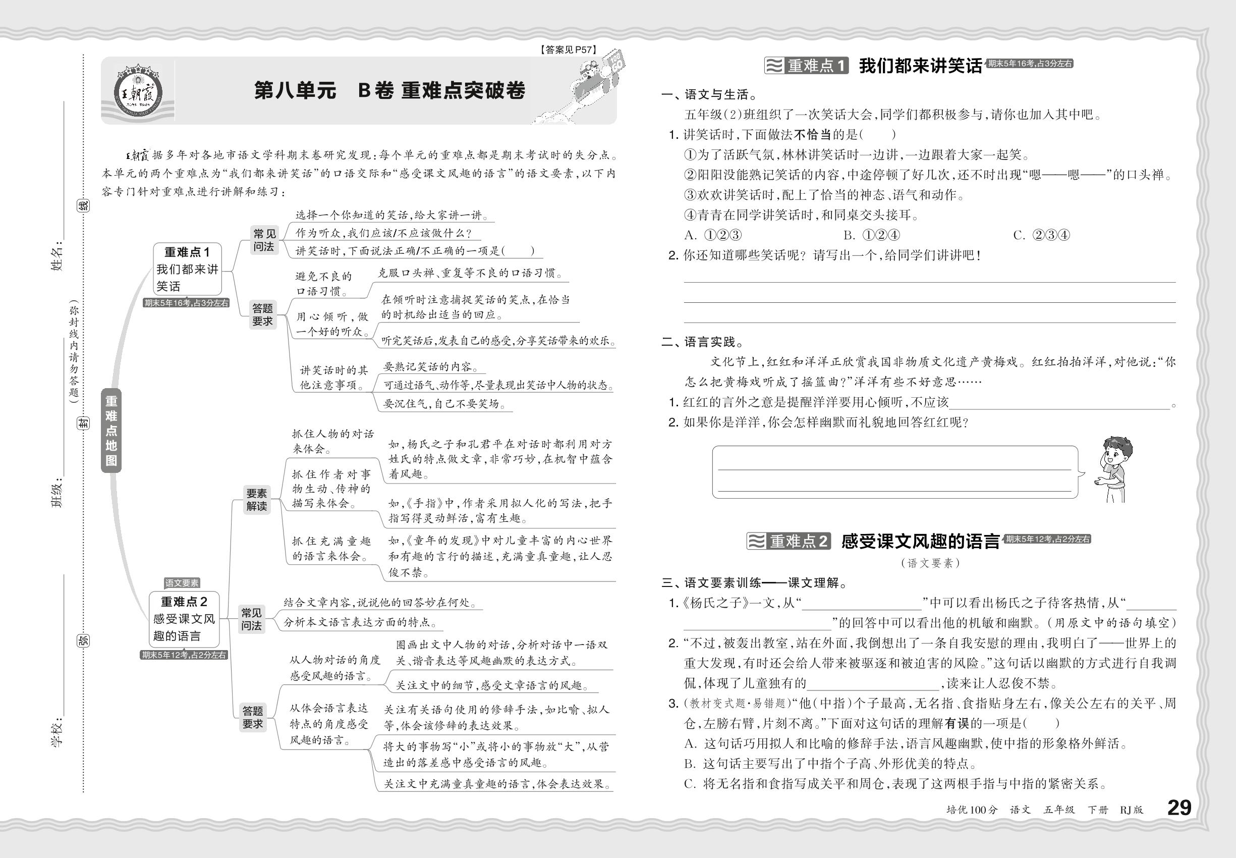 2024春下册五年级语文人教版 第八单元 B卷 重难点突破卷