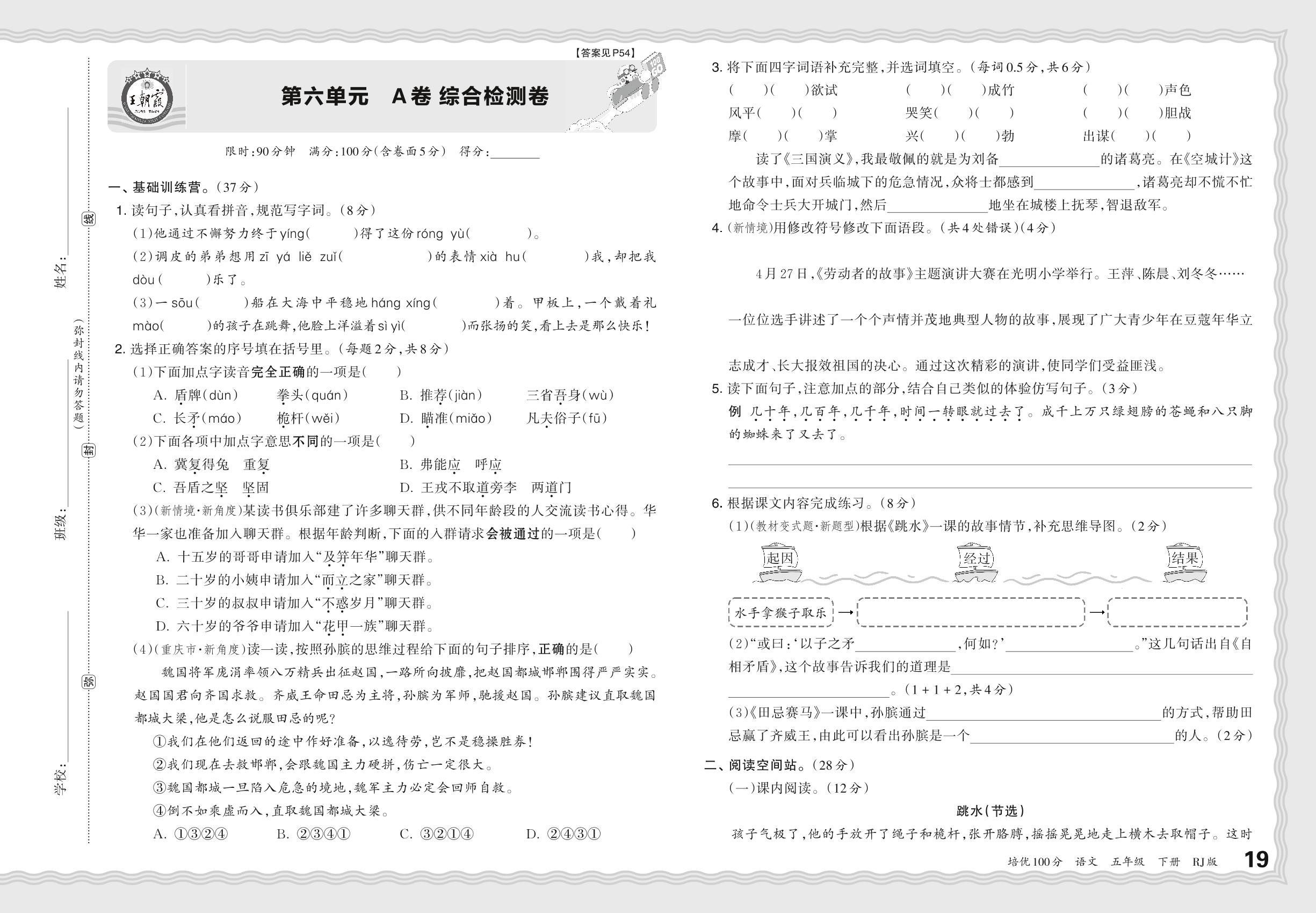 2024春下册五年级语文人教版 第六单元 A卷 综合检测卷