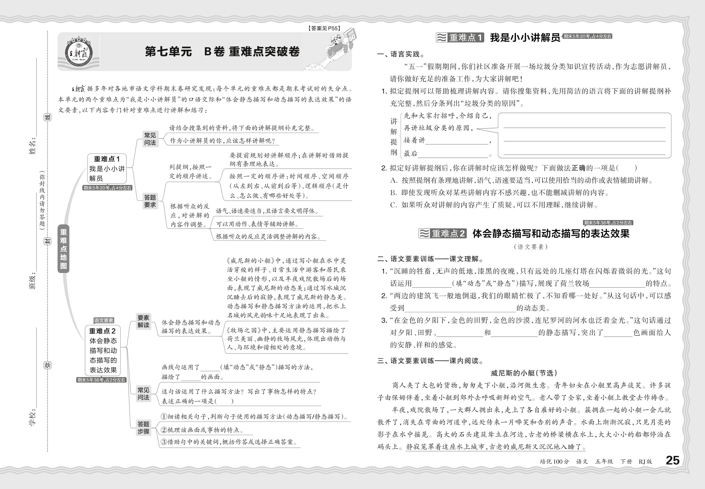 2024春下册五年级语文人教版 第七单元 B卷 重难点突破卷