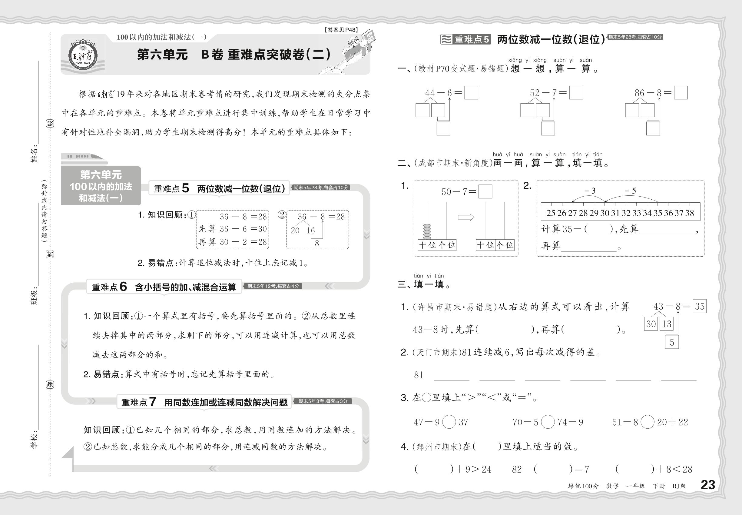 2024春下册一年级数学人教版 第六单元 B卷 重难点突破卷(二)