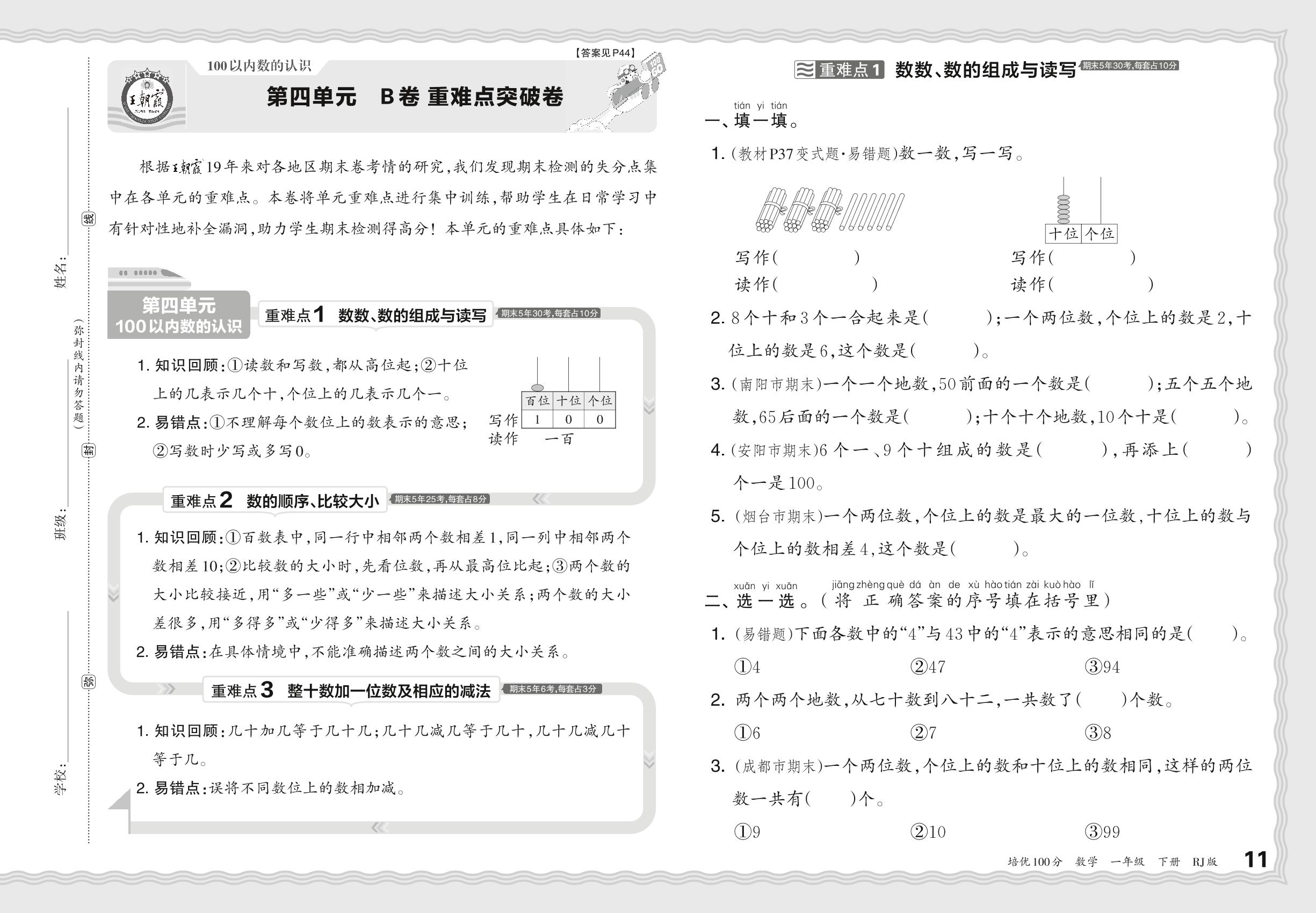 2024春下册一年级数学人教版 第四单元 B卷 重难点突破卷