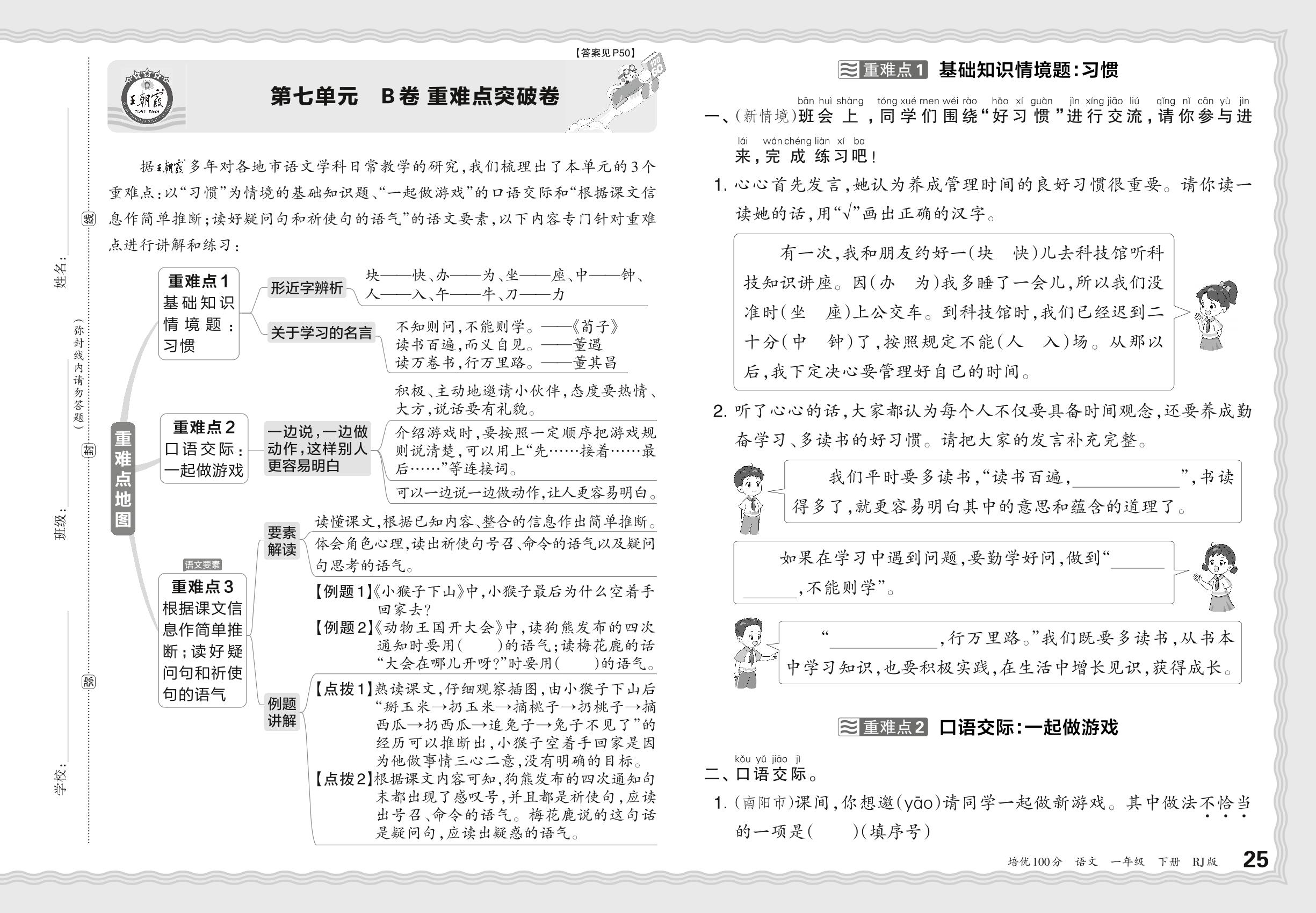 2024春下册一年级语文人教版 第七单元 B卷 重难点突破卷