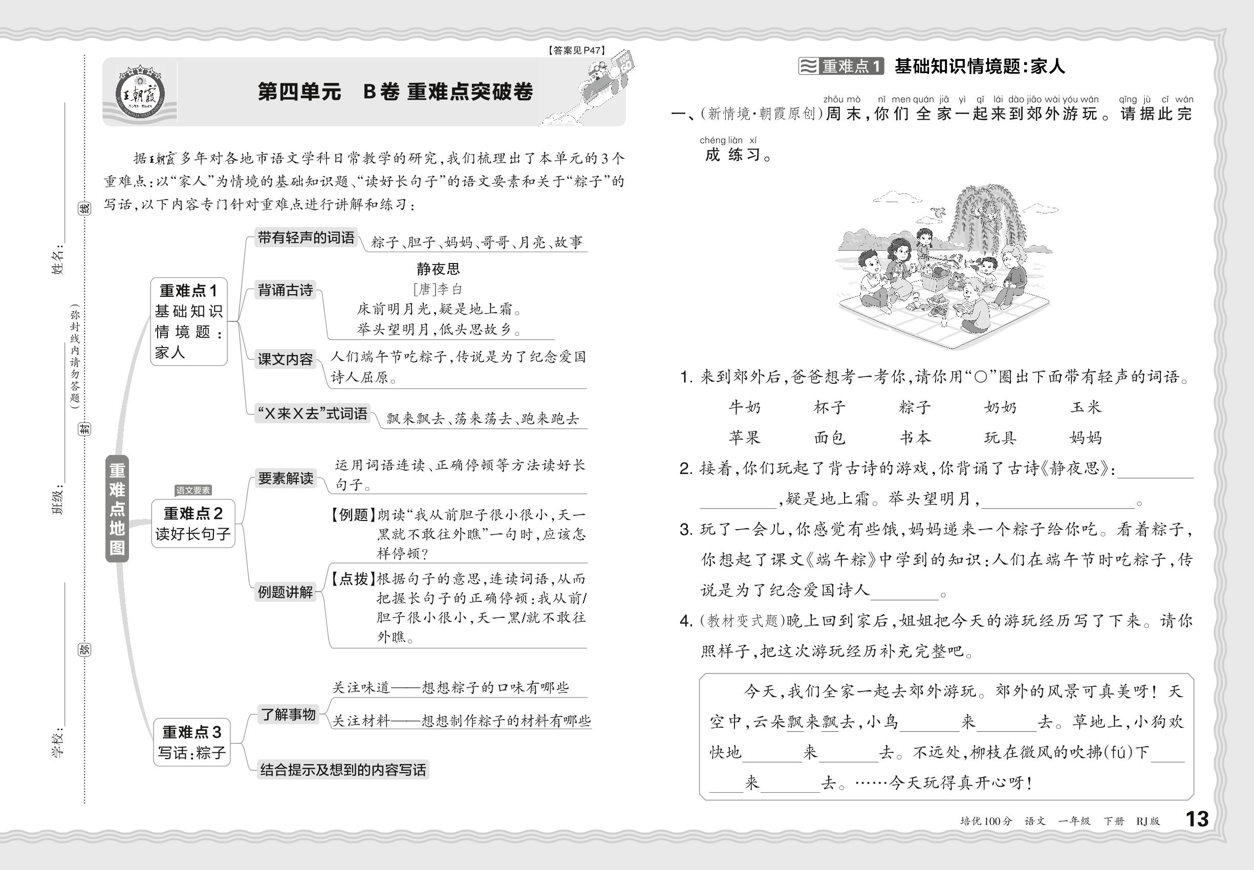2024春下册一年级语文人教版 第四单元 B卷 重难点突破卷