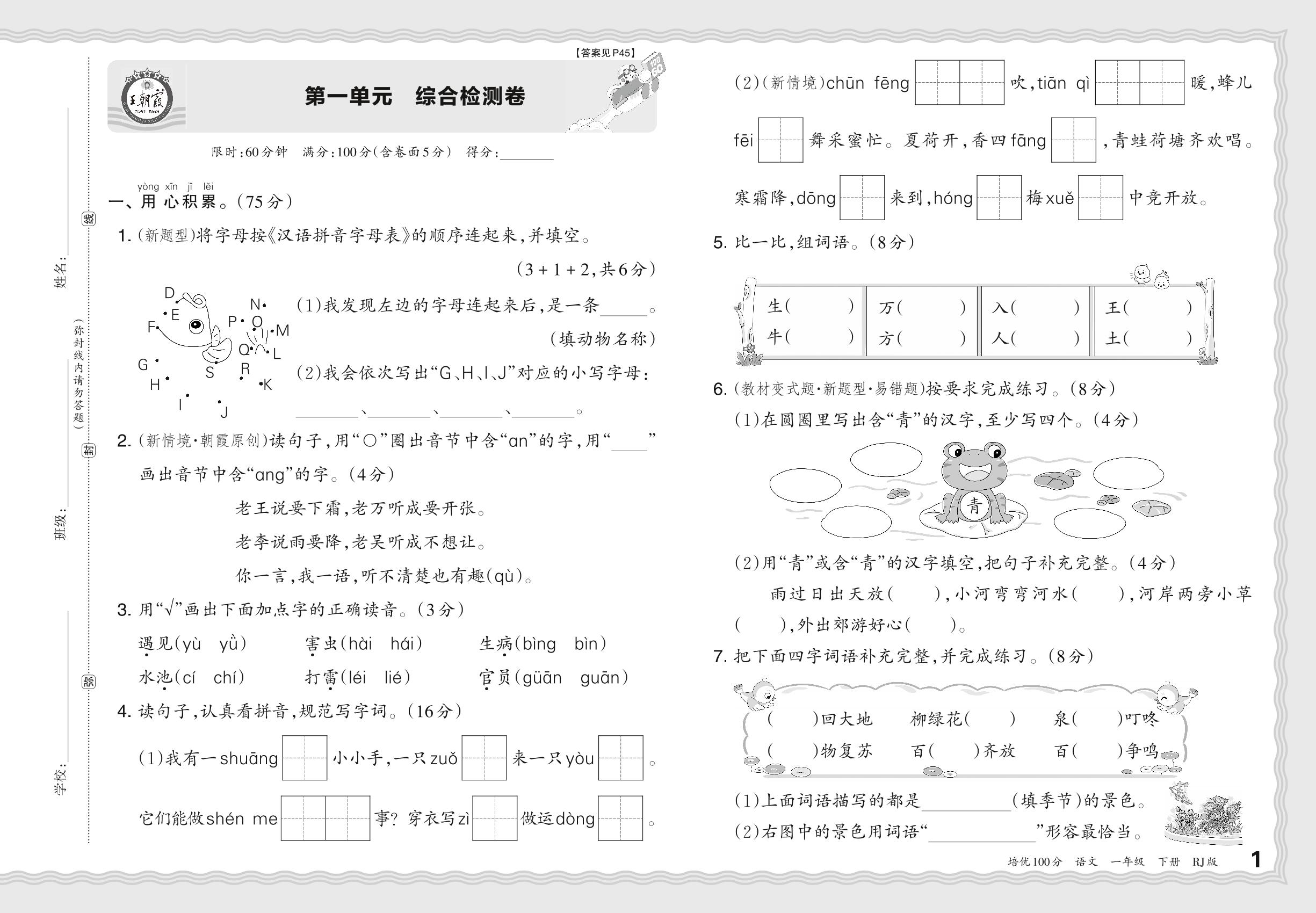 一年级语文人教版下册单元卷