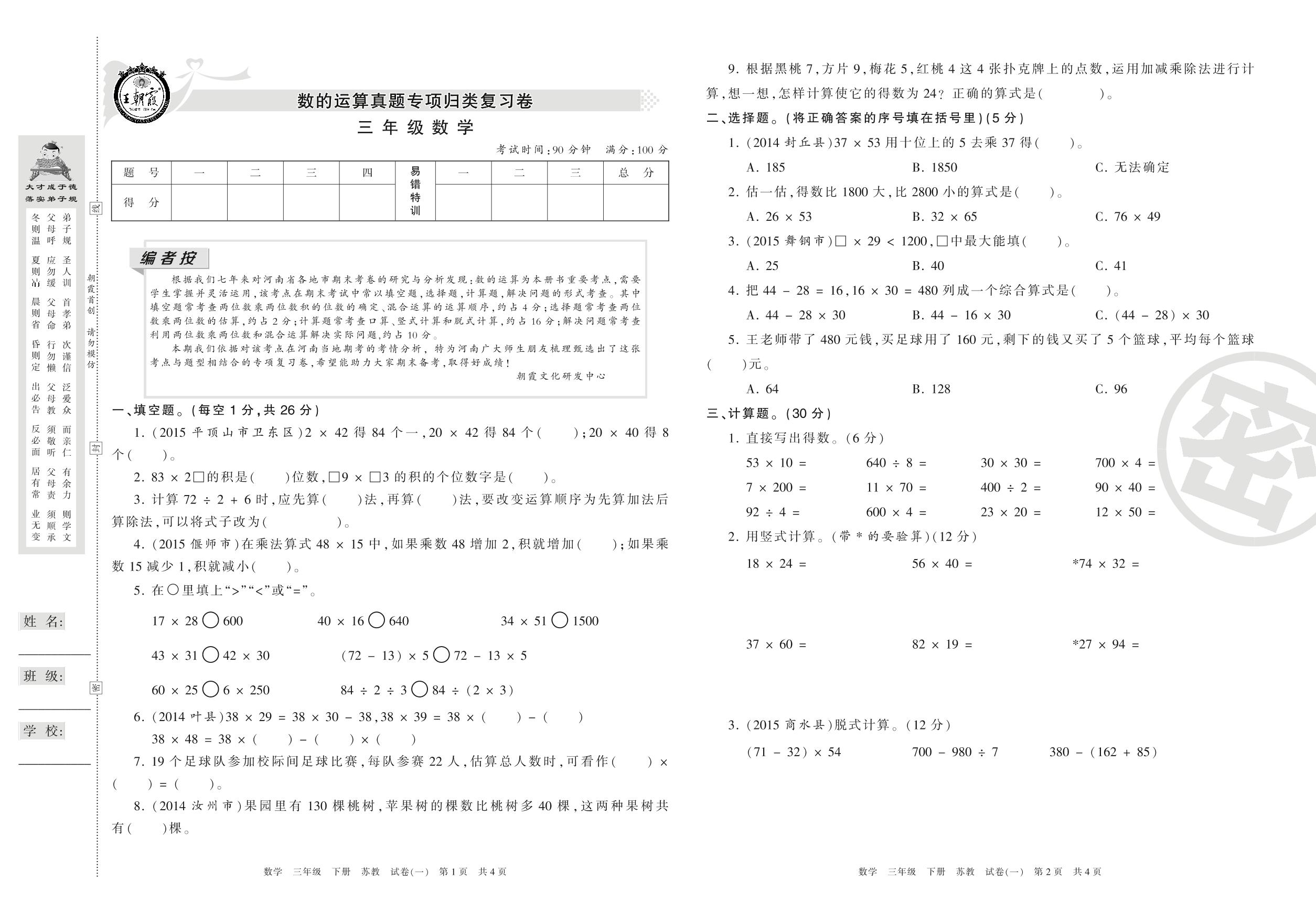 王朝霞期末专项卷三年级下册数学(苏教版)_R210804100708【1】