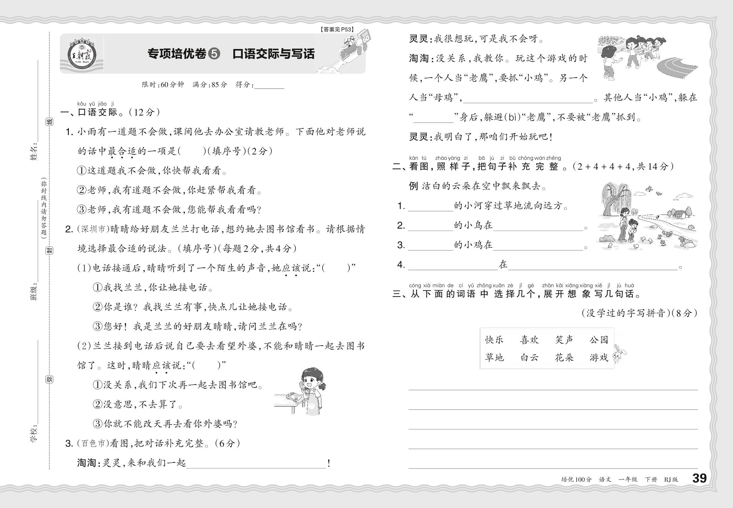 2024春下册一年级语文人教版 期末专项卷PY版·口语交际与写话【5】