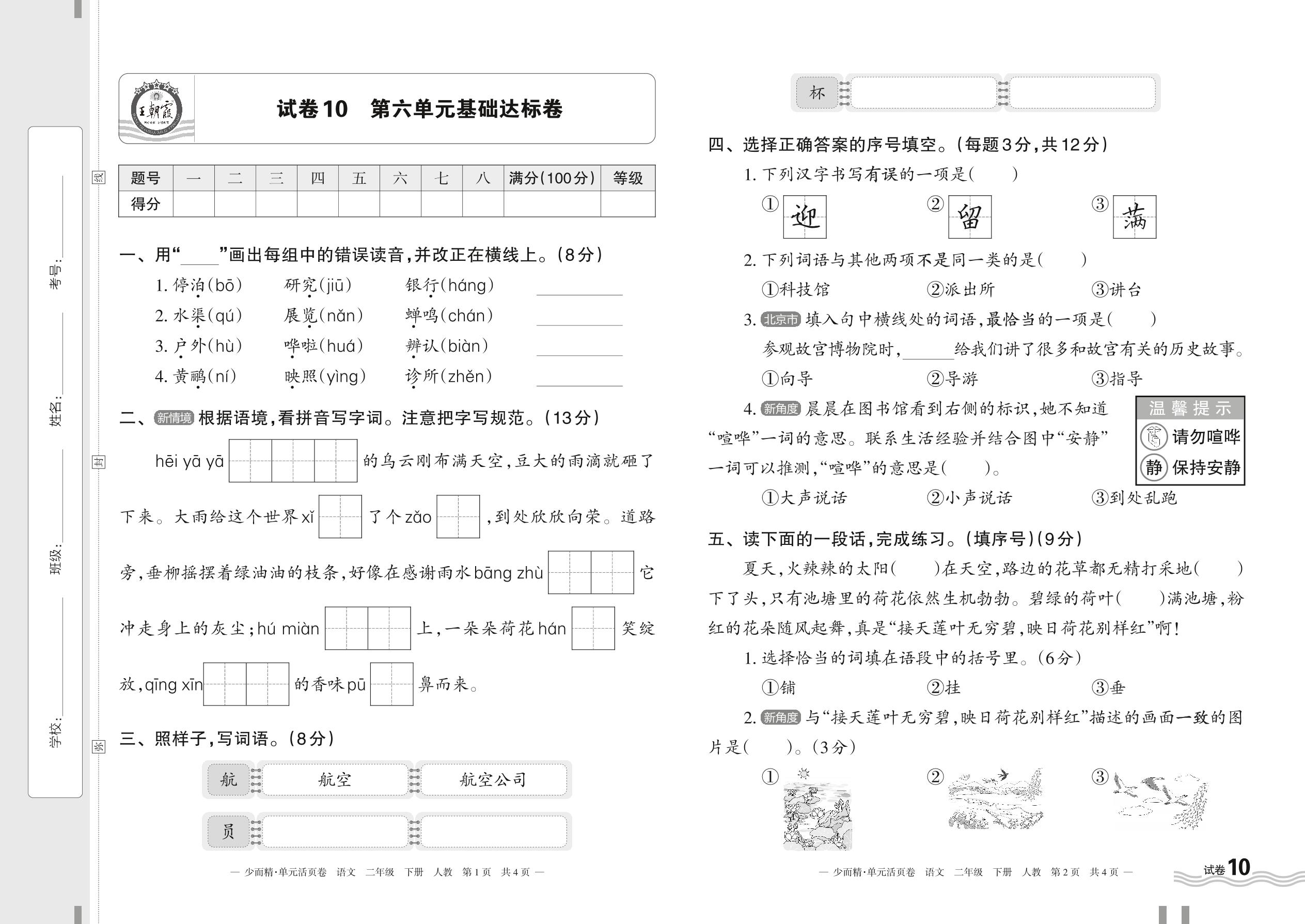 二年级语文人教版下册单元卷