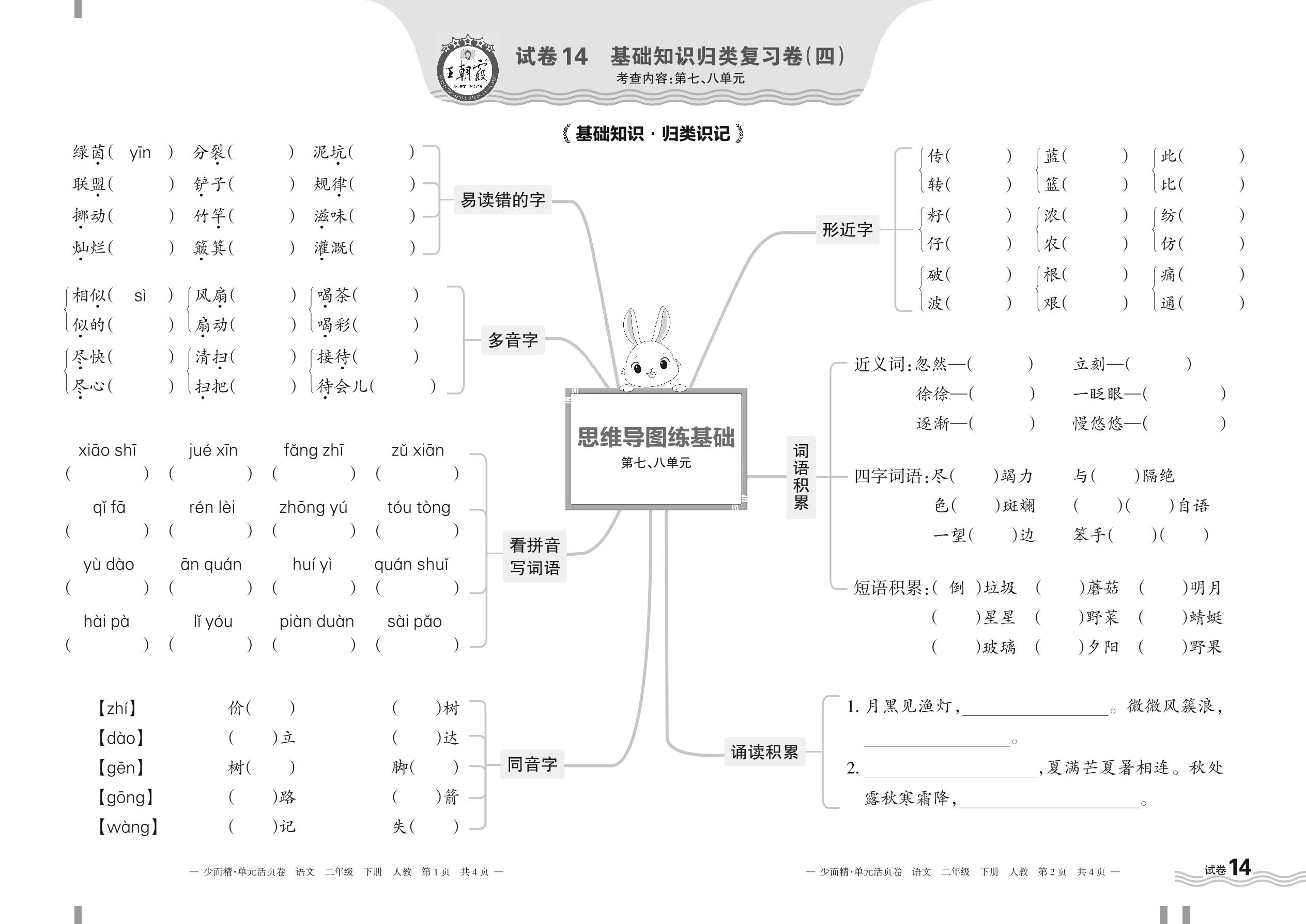 2024春下册二年级语文人教版 第七、八单元基础知识归类复习卷【14】