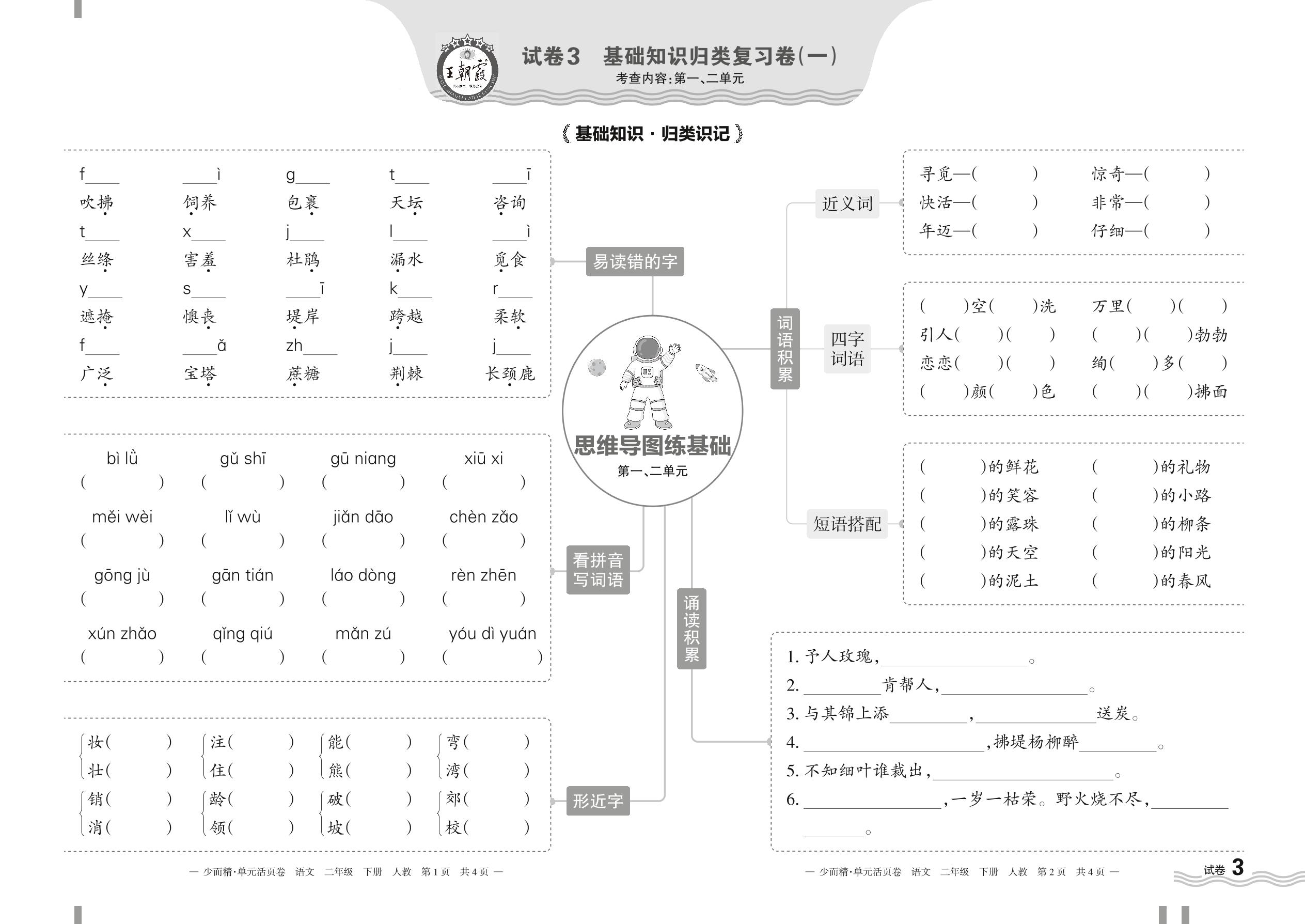 2024春下册二年级语文人教版 第一、二单元基础知识归类复习卷【3】