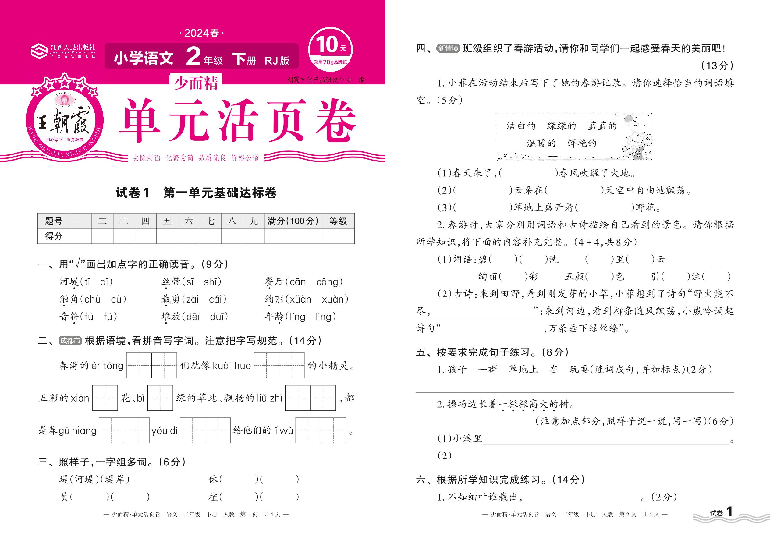 2024春下册二年级语文人教版 第一单元基础达标卷【1】