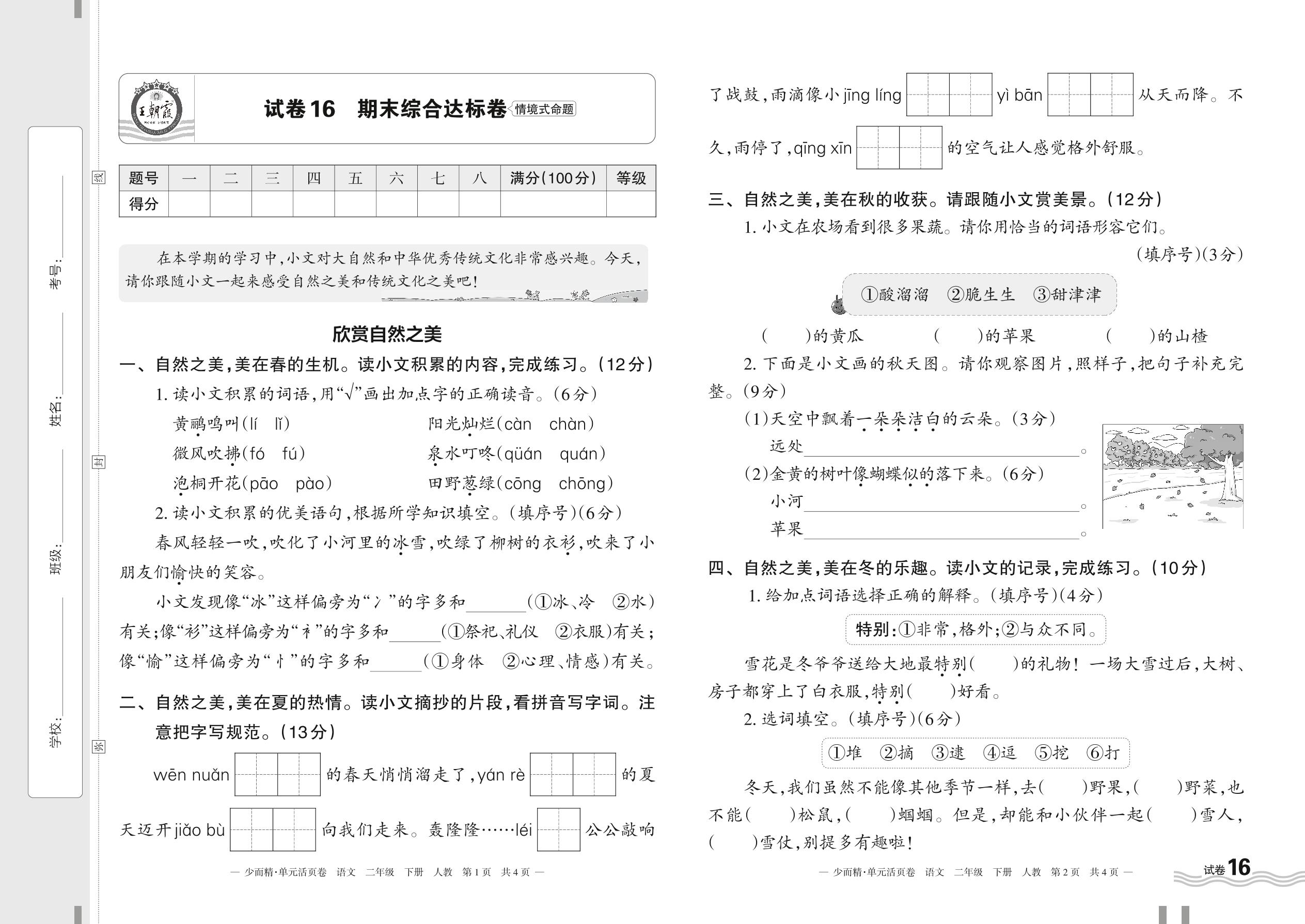 2024春下册二年级语文人教版 期末综合达标卷【16】