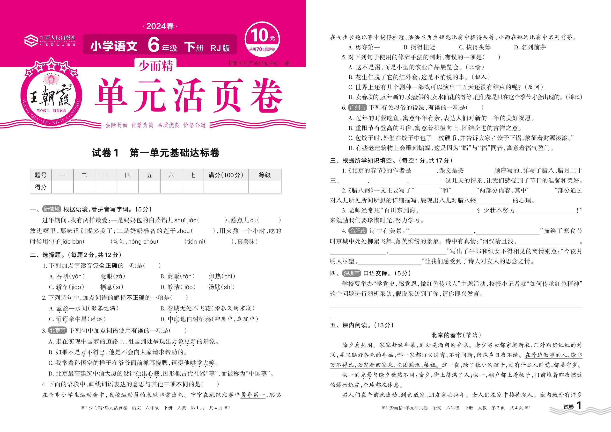 六年级语文人教版下册单元卷
