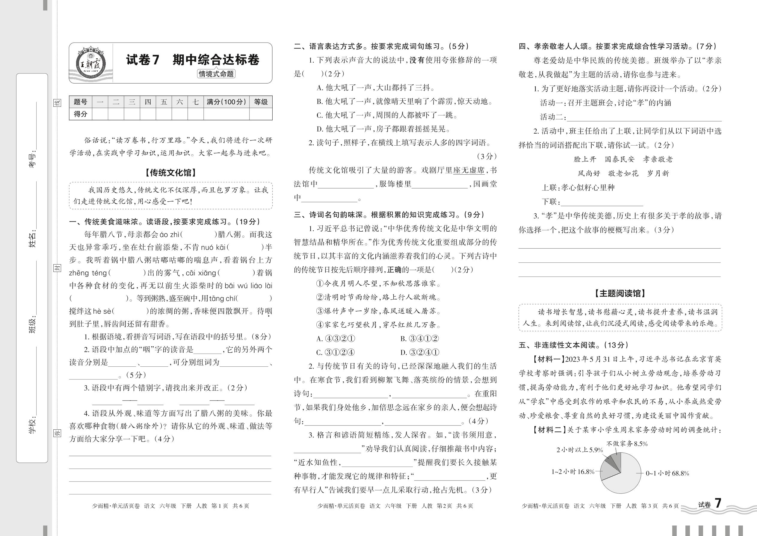2024春下册六年级语文人教版 期中综合达标卷【7】