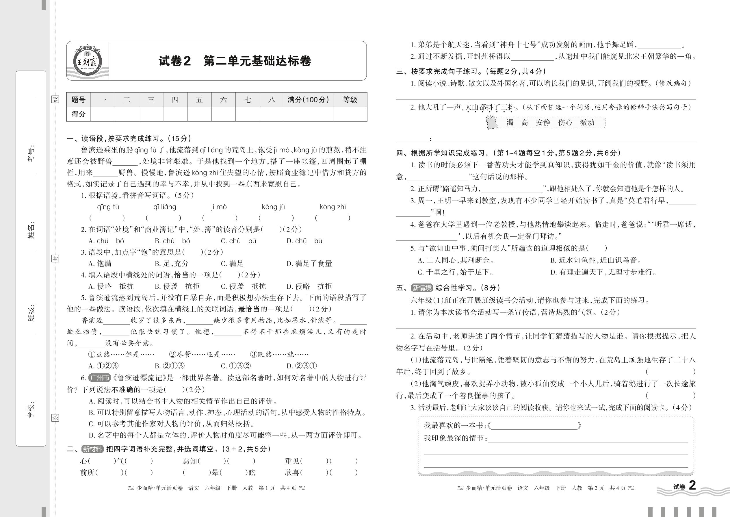 六年级语文人教版下册单元卷