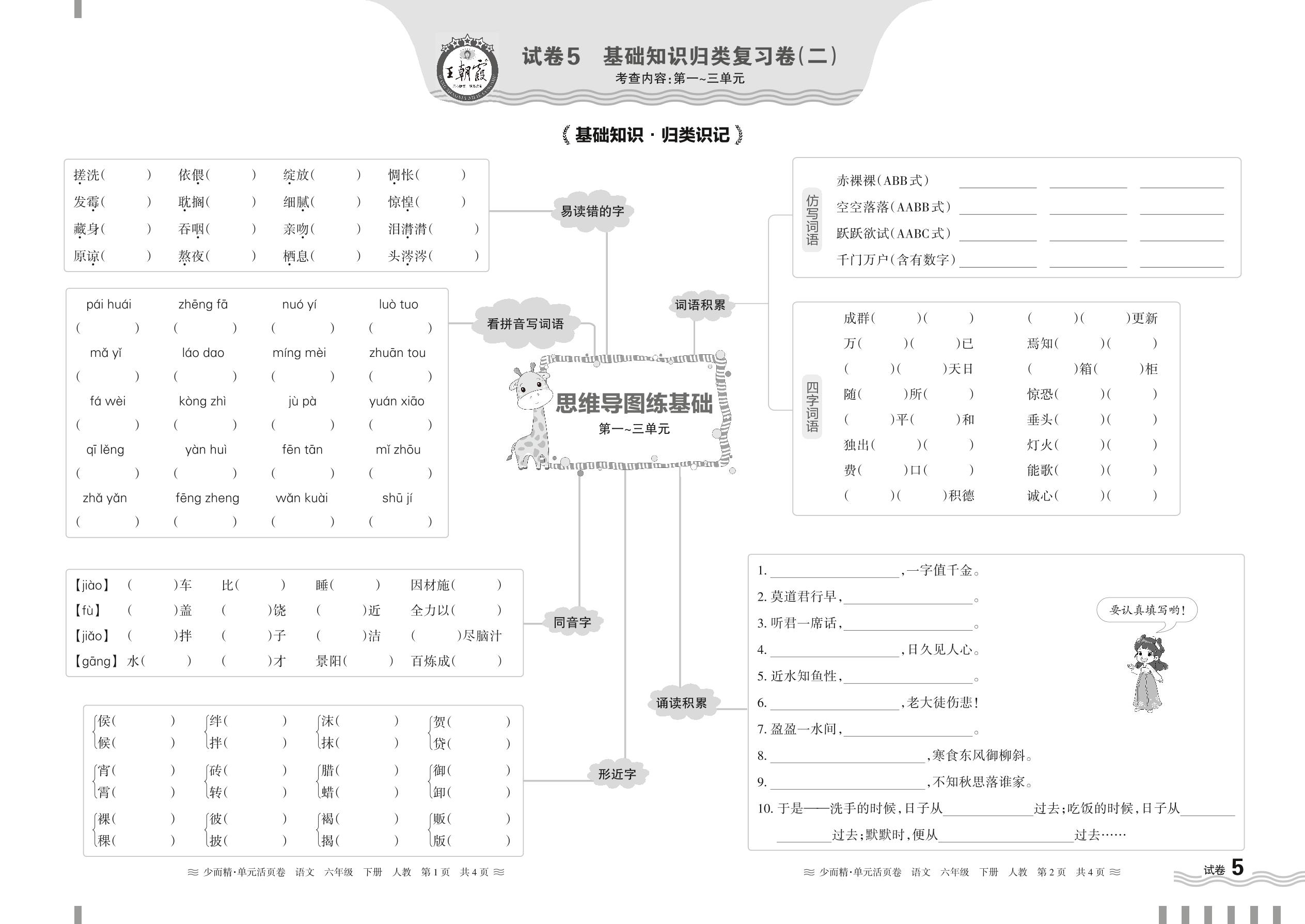2024春下册六年级语文人教版 第一~三单元基础知识归类复习卷【5】