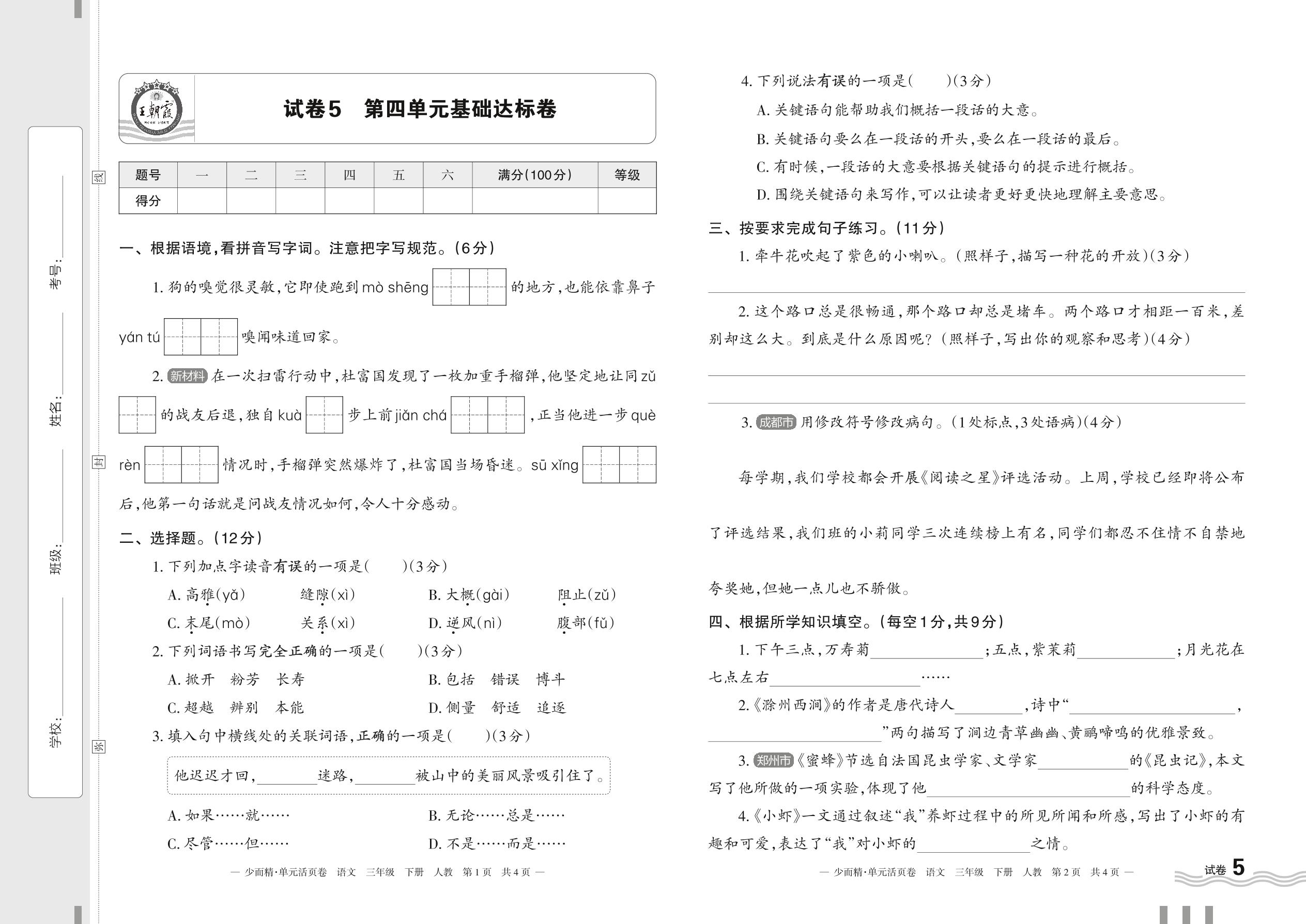 2024春下册三年级语文人教版 第四单元基础达标卷【5】