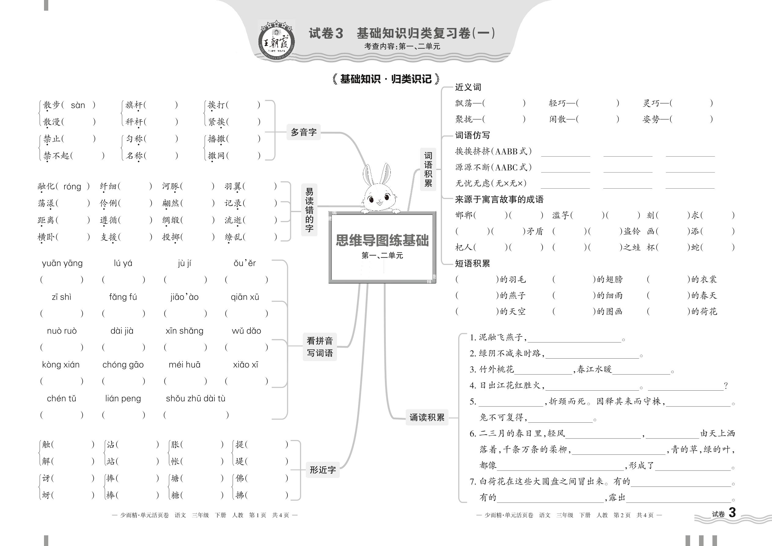 2024春下册三年级语文人教版 第一、二单元基础知识归类复习卷【3】