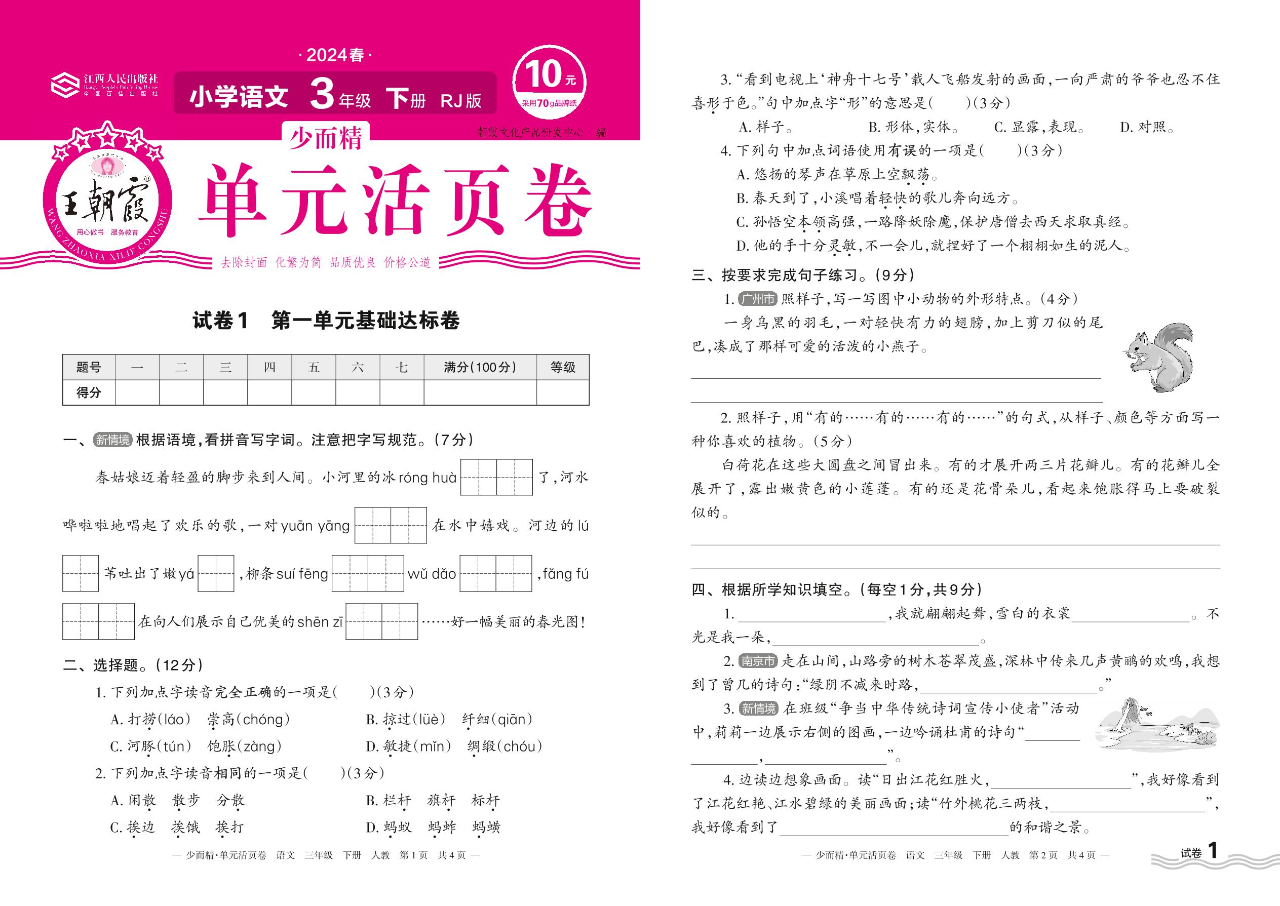 2024春下册三年级语文人教版 第一单元基础达标卷【1】