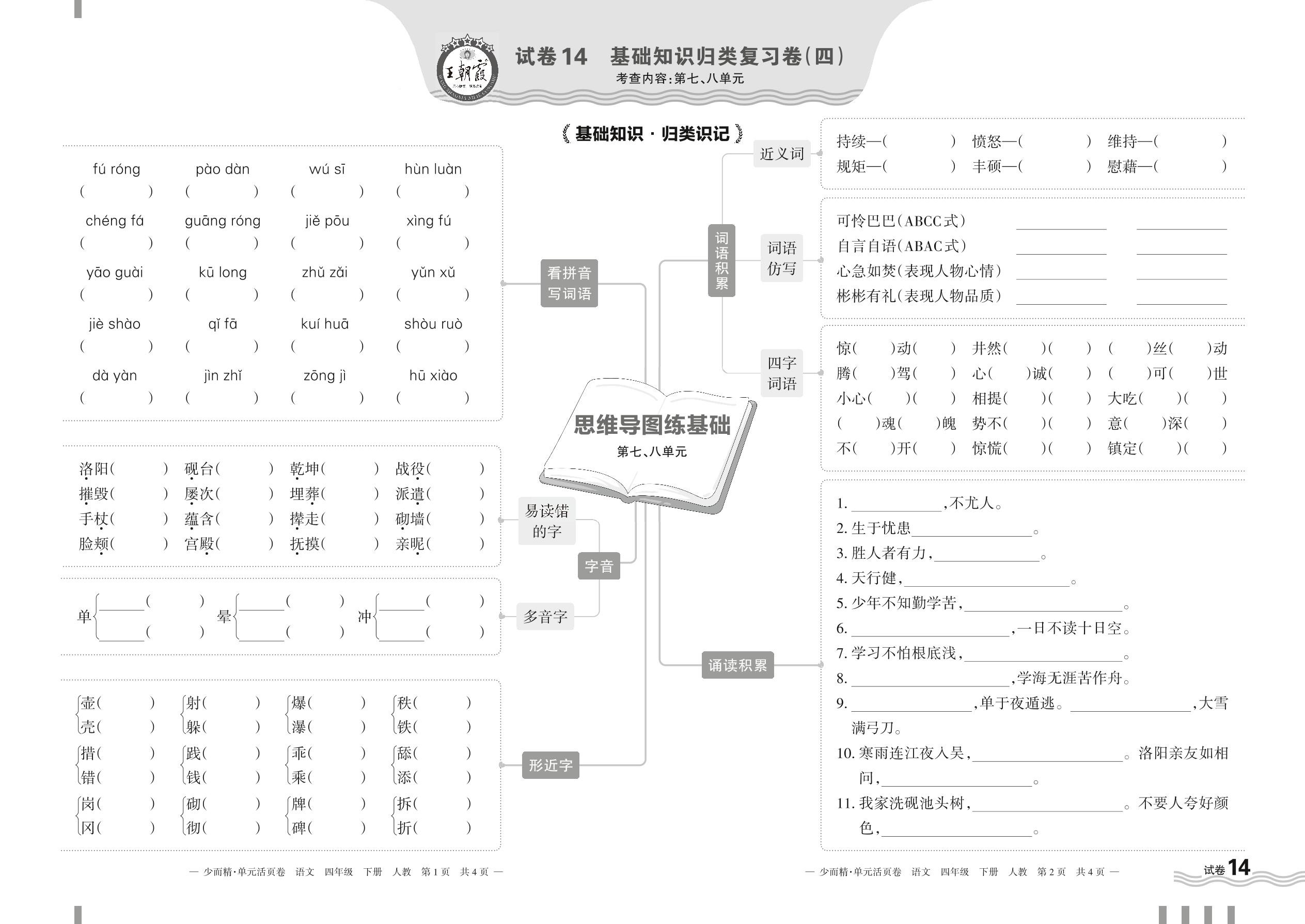 2024春下册四年级语文人教版 第七、八单元基础知识归类复习卷【14】