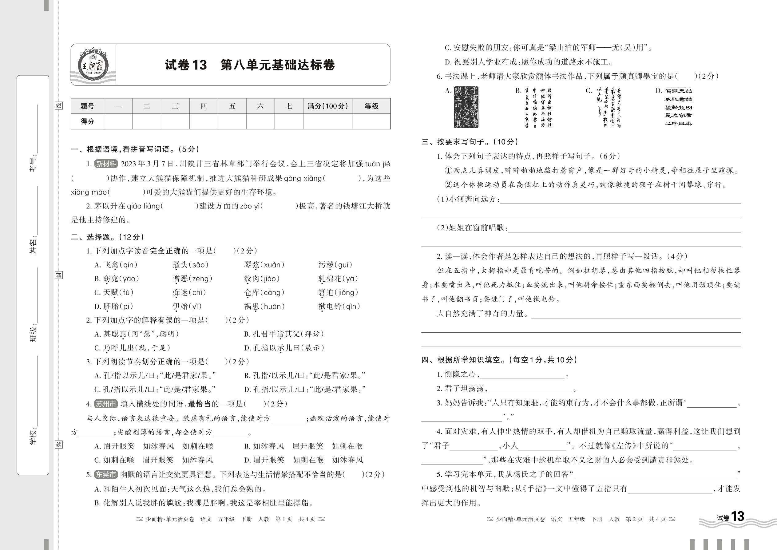 五年级语文人教版下册单元卷