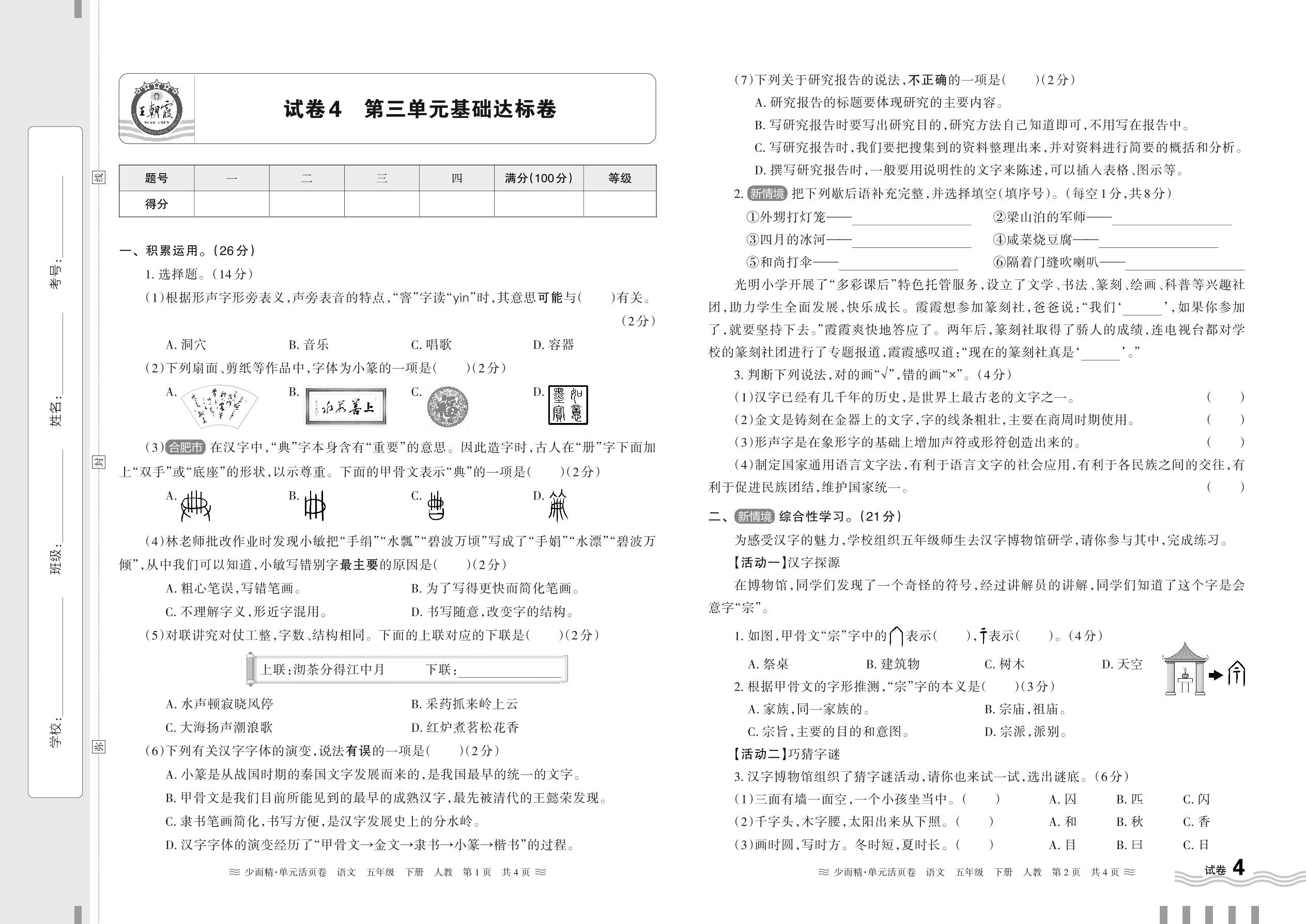 2024春下册五年级语文人教版 第三单元基础达标卷【4】
