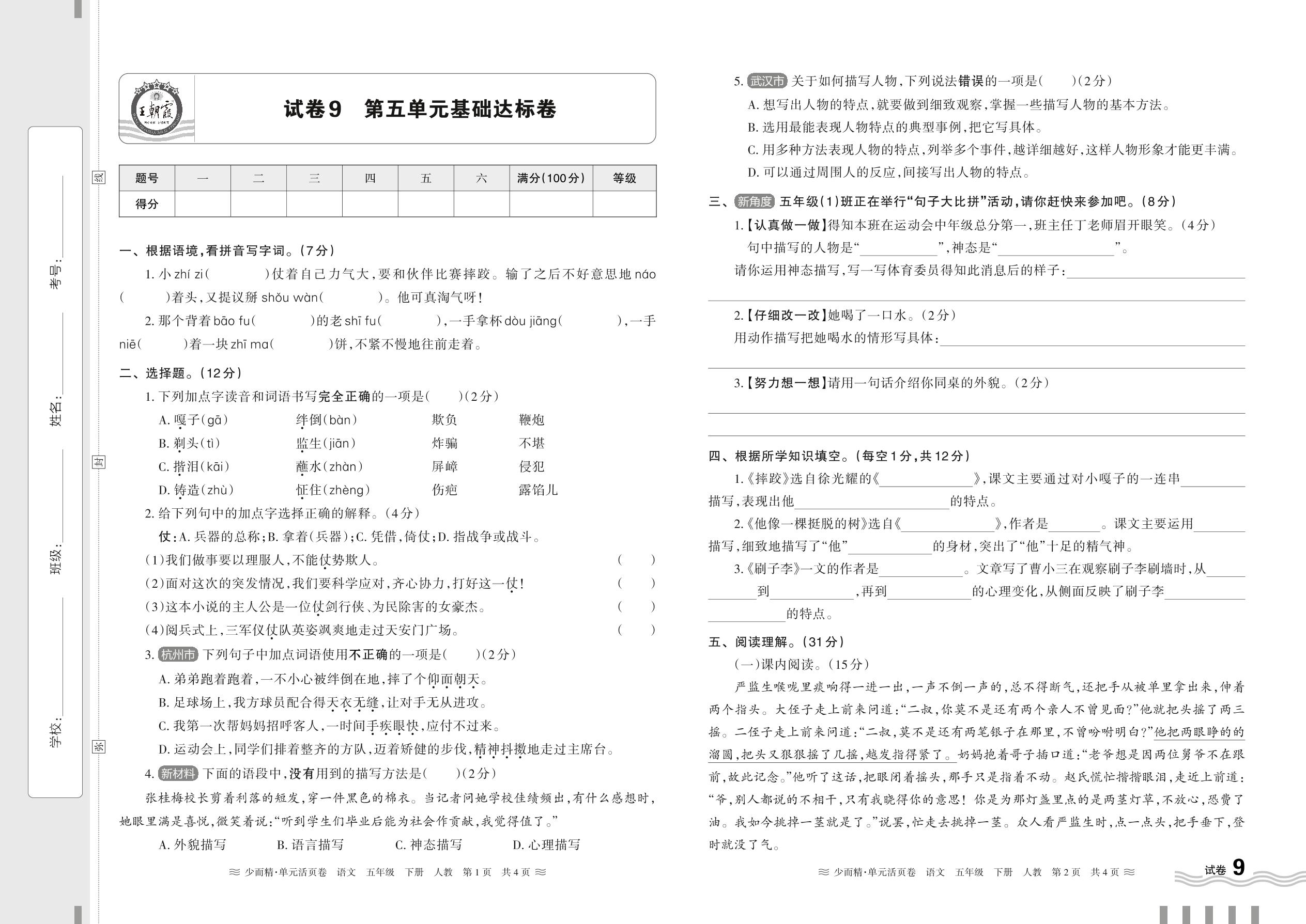 2024春下册五年级语文人教版 第五单元基础达标卷【9】