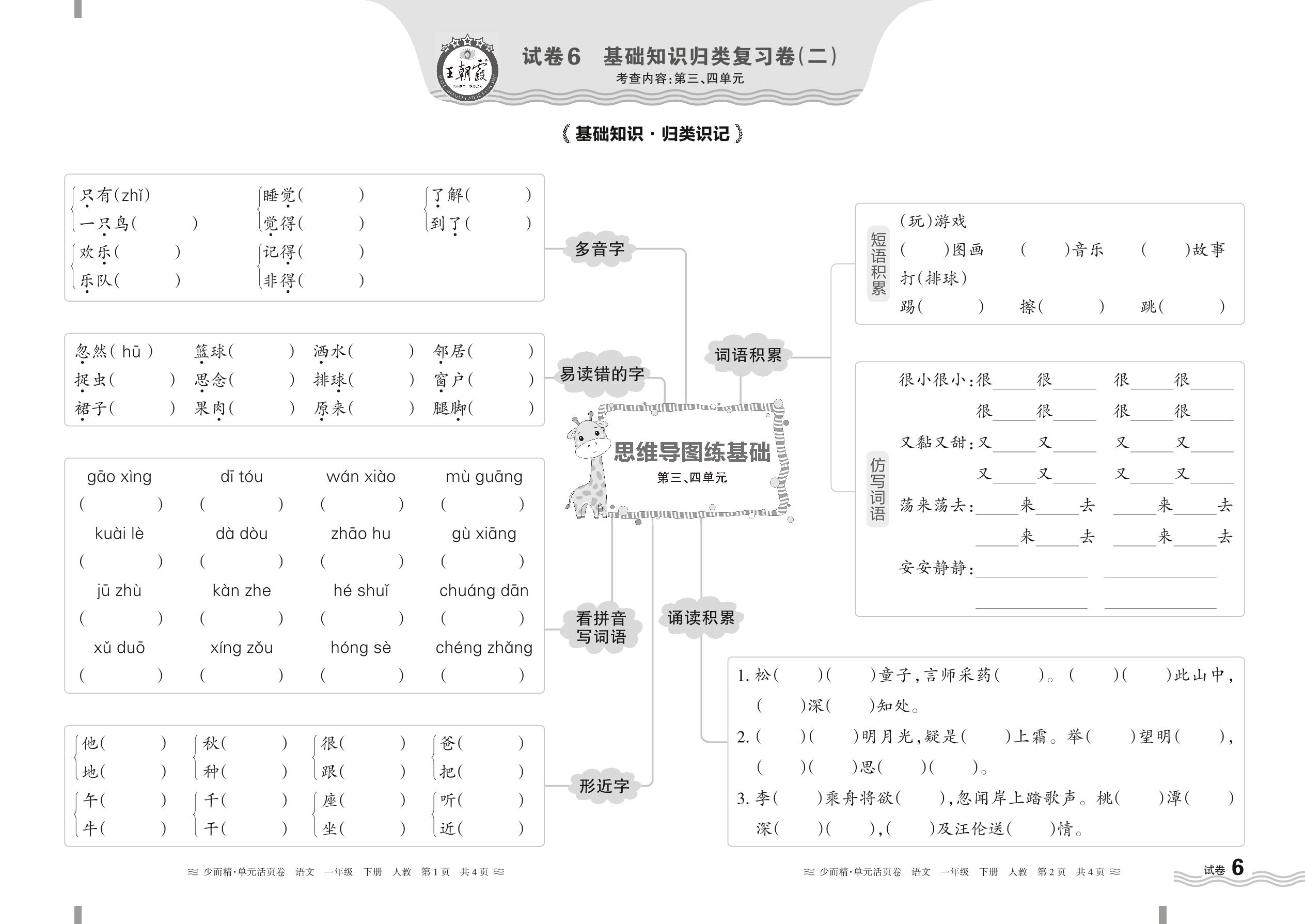 2024春下册一年级语文人教版 第三、四单元基础知识归类复习卷【6】