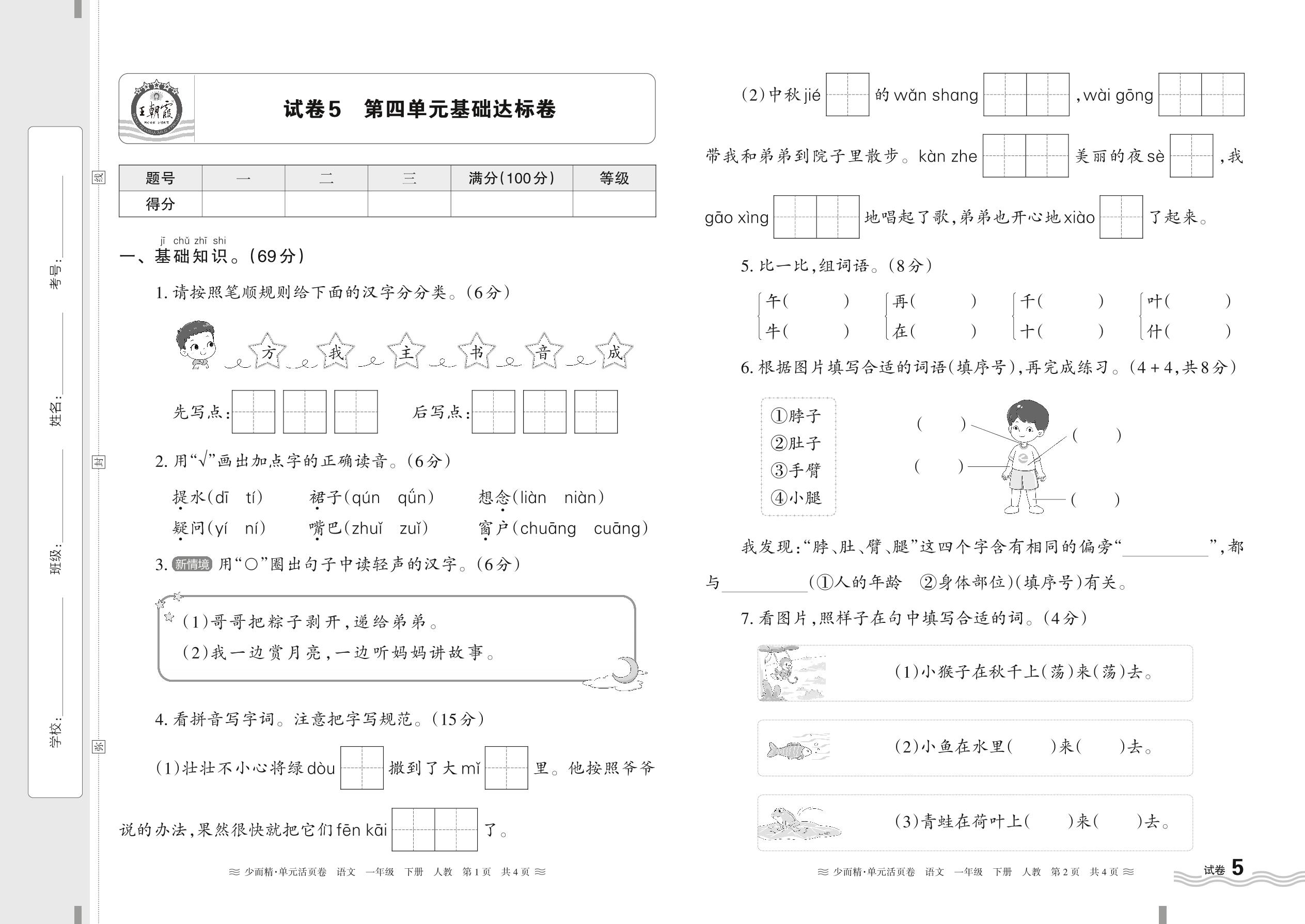 2024春下册一年级语文人教版 第四单元基础达标卷【5】