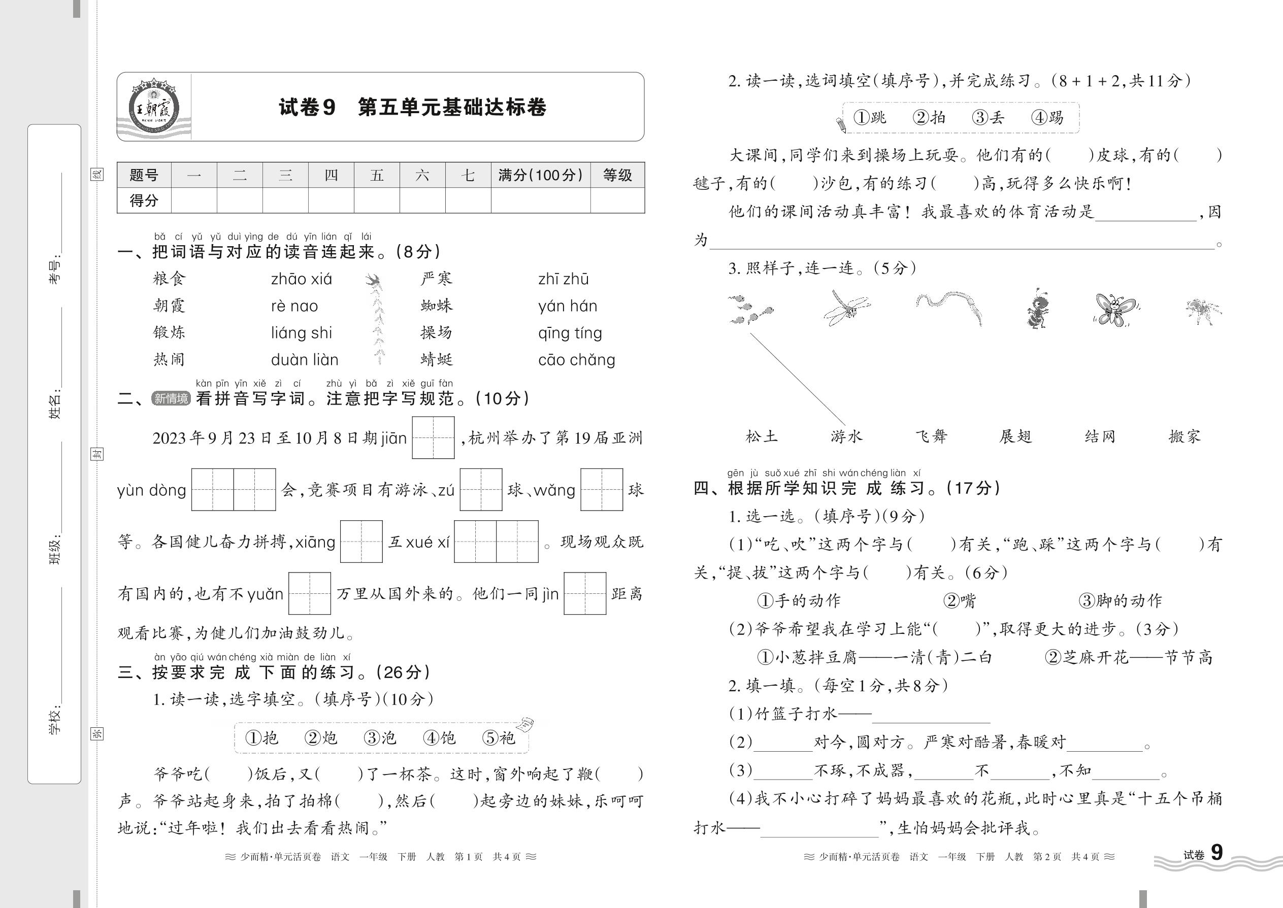 2024春下册一年级语文人教版 第五单元基础达标卷【9】