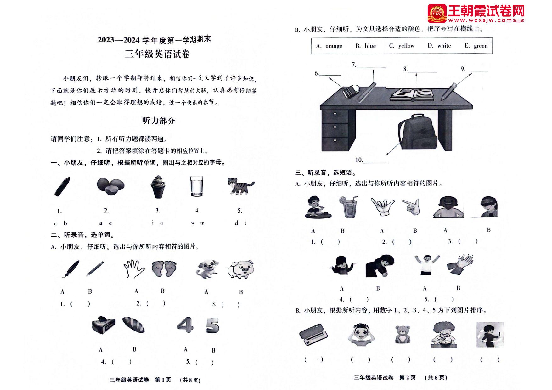 河北省廊坊市三河市2023-2024学年度第一学期期末试卷三年级英语(人教PEP版)【无听力音频】