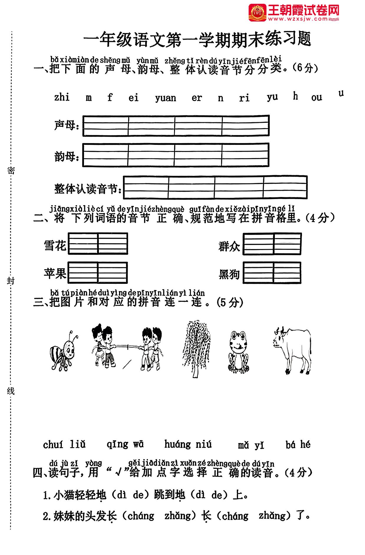 河北省廊坊市霸州市2023-2024学年第一学期期末练习题一年级语文(人教版)