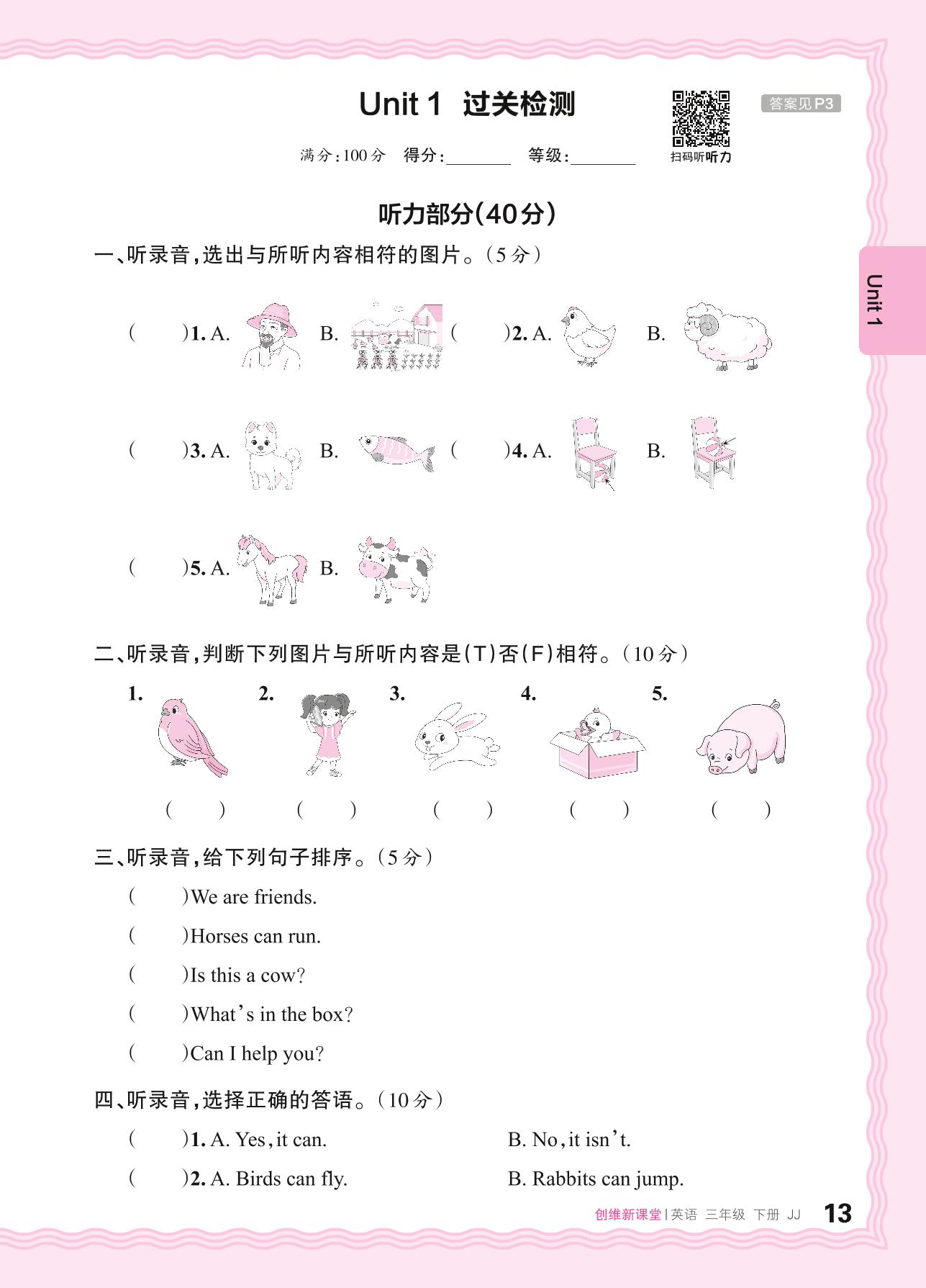 三年级英语冀教版下册单元卷