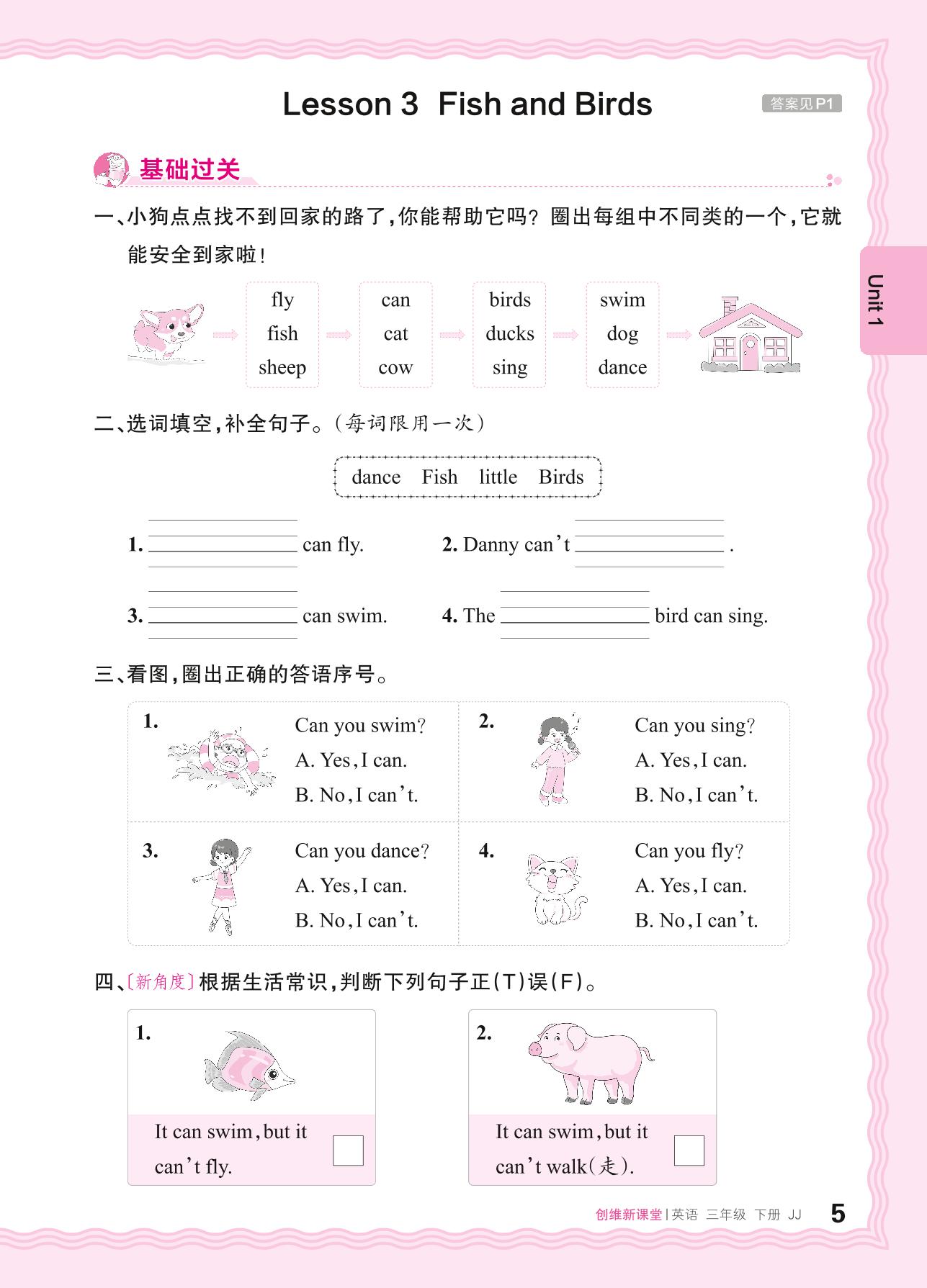 2024春下册三年级英语冀教版 Unit 1—Lesson 3 Fish and Birds