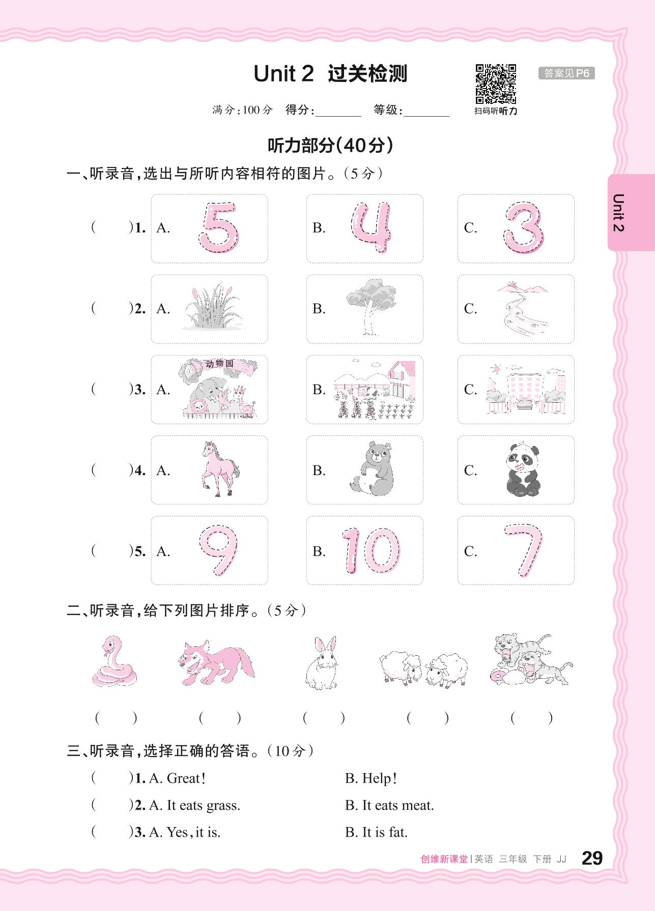 三年级英语冀教版下册单元卷