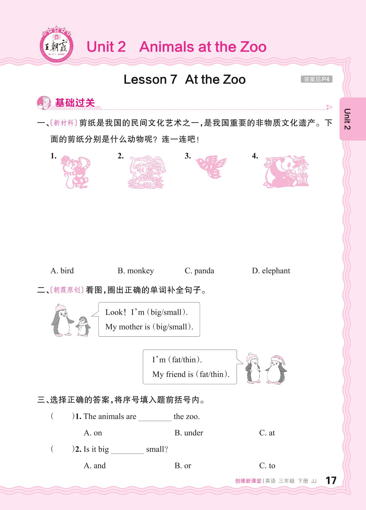 2024春下册三年级英语冀教版 Unit 2—Lesson 7 At the Zoo