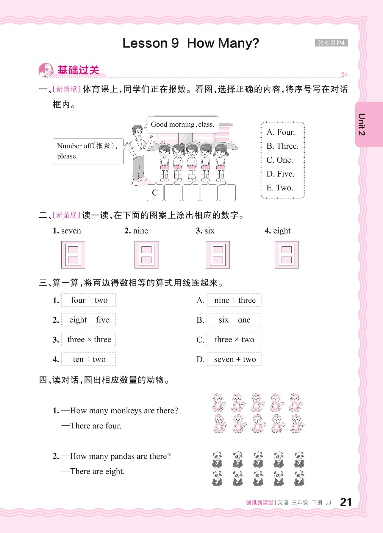 2024春下册三年级英语冀教版 Unit 2—Lesson 9 How Many?