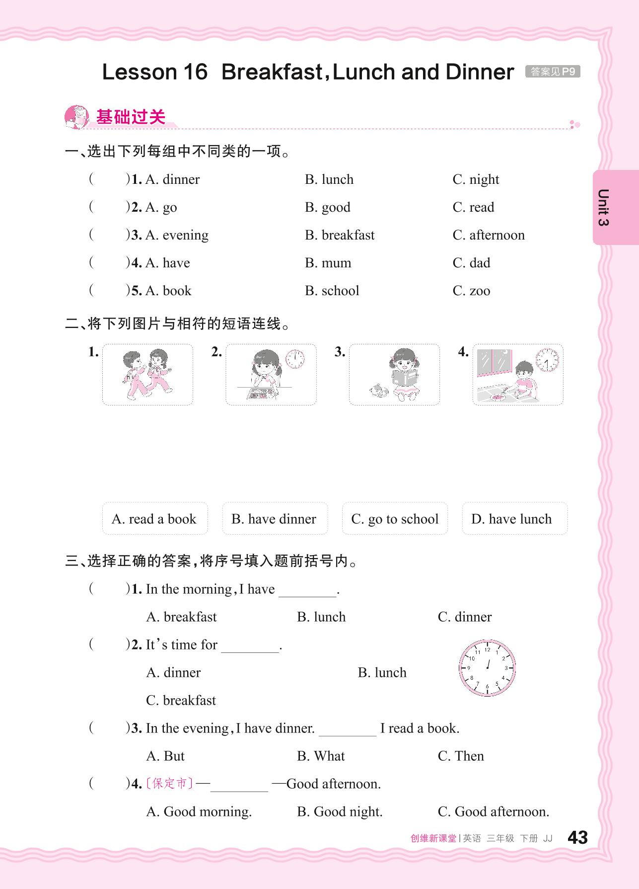2024春下册三年级英语冀教版 Unit 3—Lesson 16 Breakfast,Lunch and Dinner
