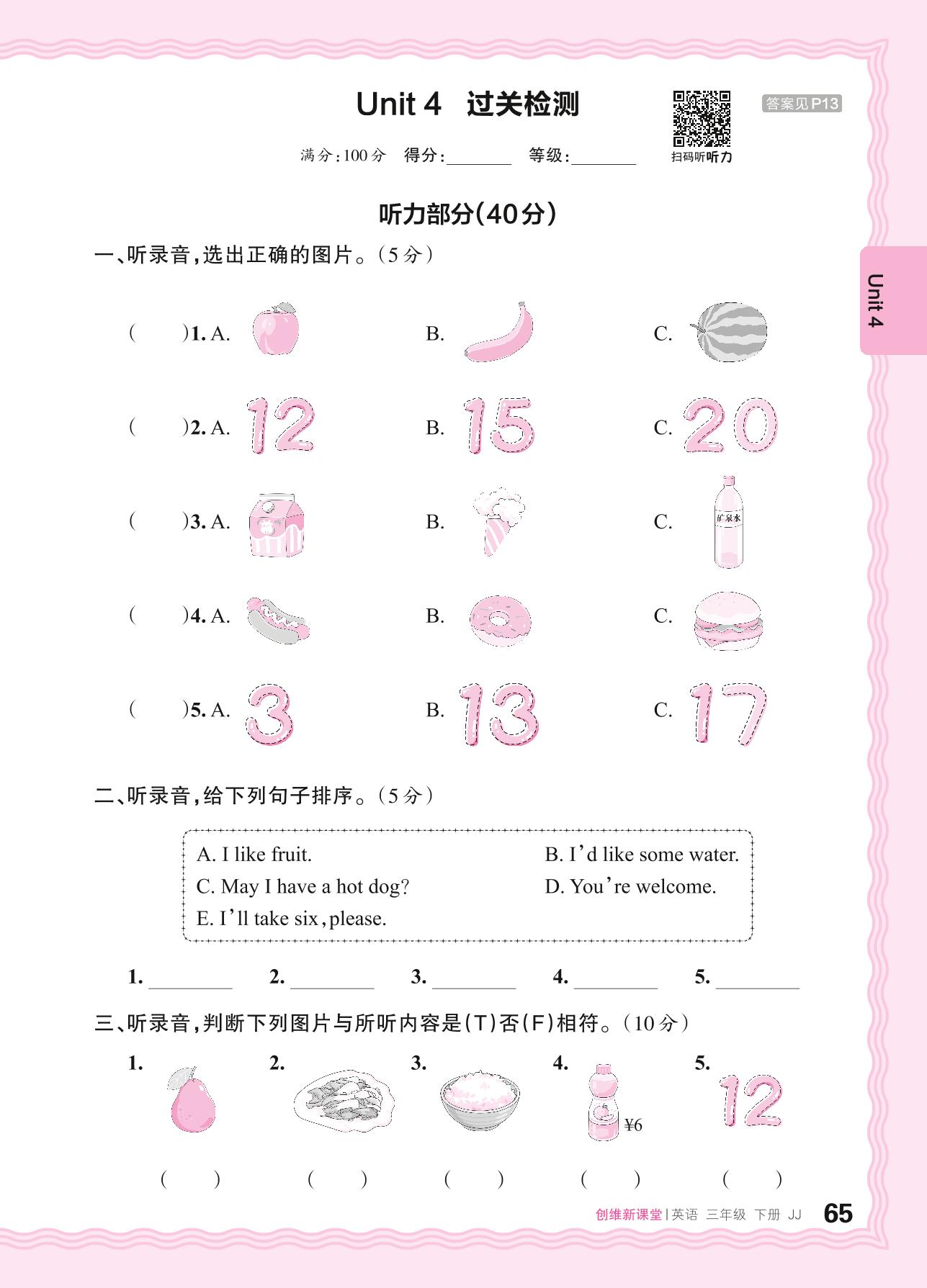 2024春下册三年级英语冀教版 Unit 4 过关检测